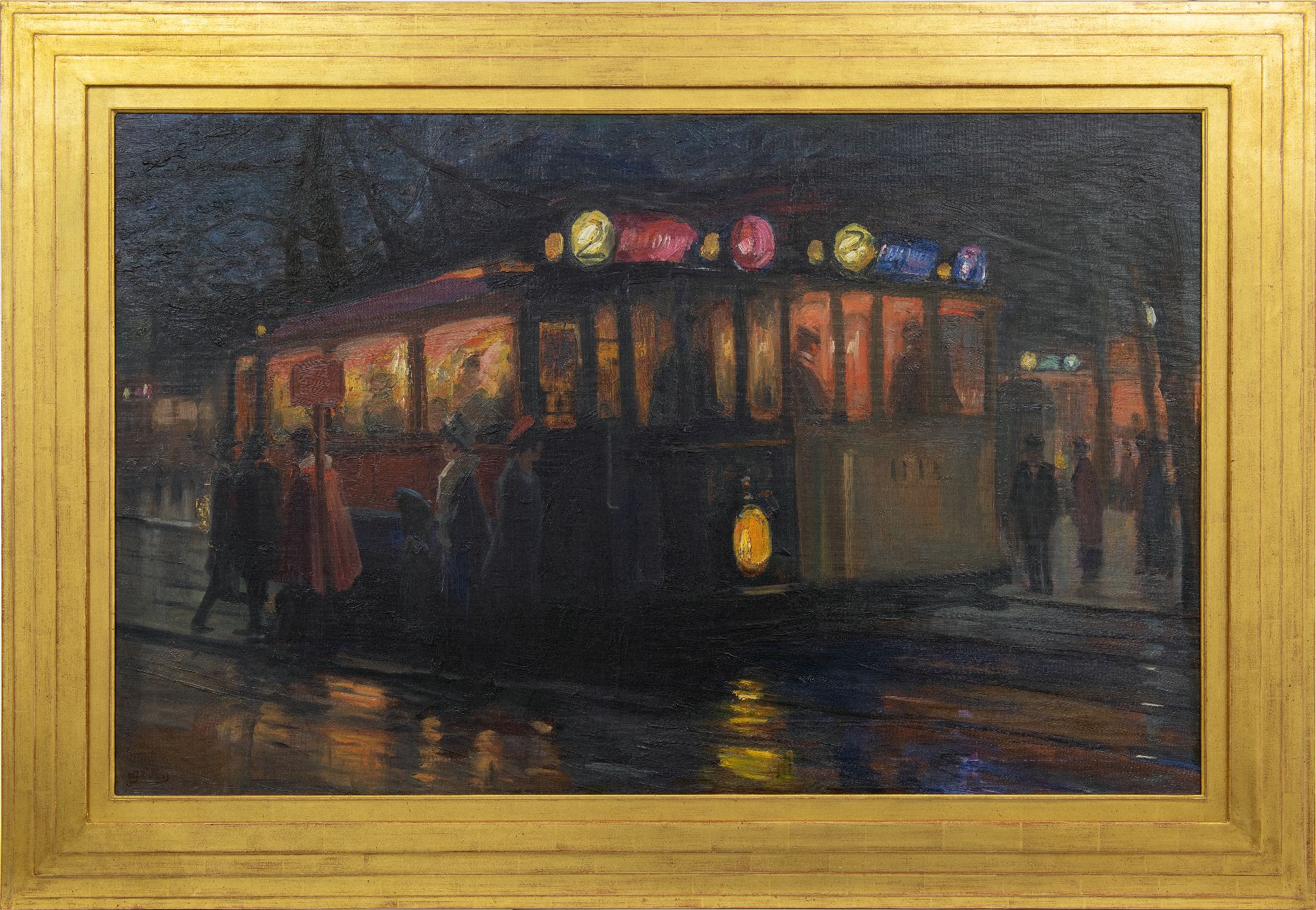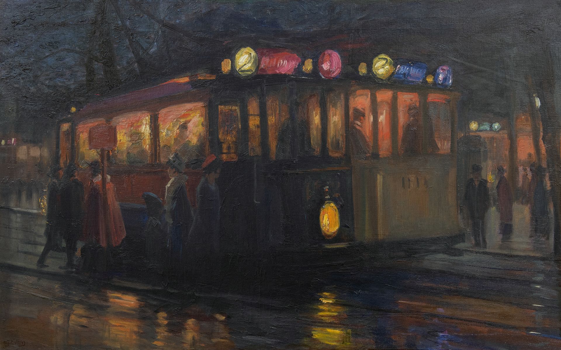 Marius Richters kunstwerk • schilderij • voorheen te koop Trams bij het Beursplein, Rotterdam