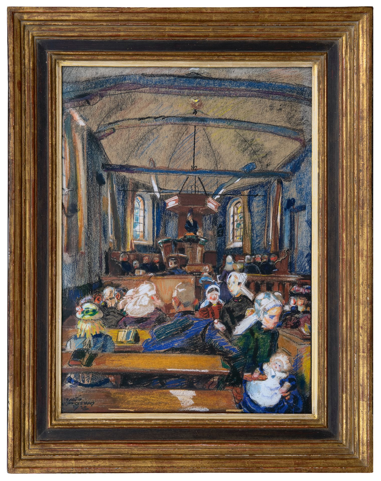 Martin Monnickendam kunstwerk • aquarel • tekening • voorheen te koop Kerkdienst op de Veluwe, in Kootwijk