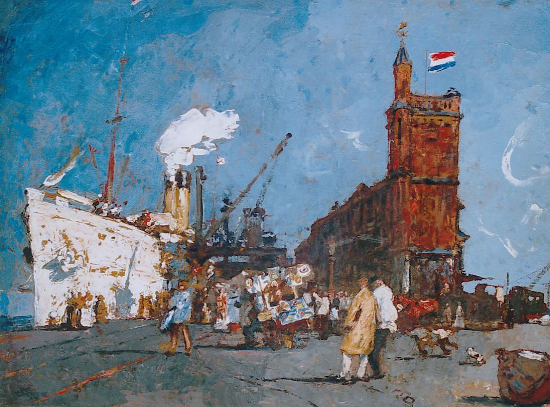 Martin Monnickendam kunstwerk • schilderij • voorheen te koop Oceaanstomer aan de kade, Amsterdam