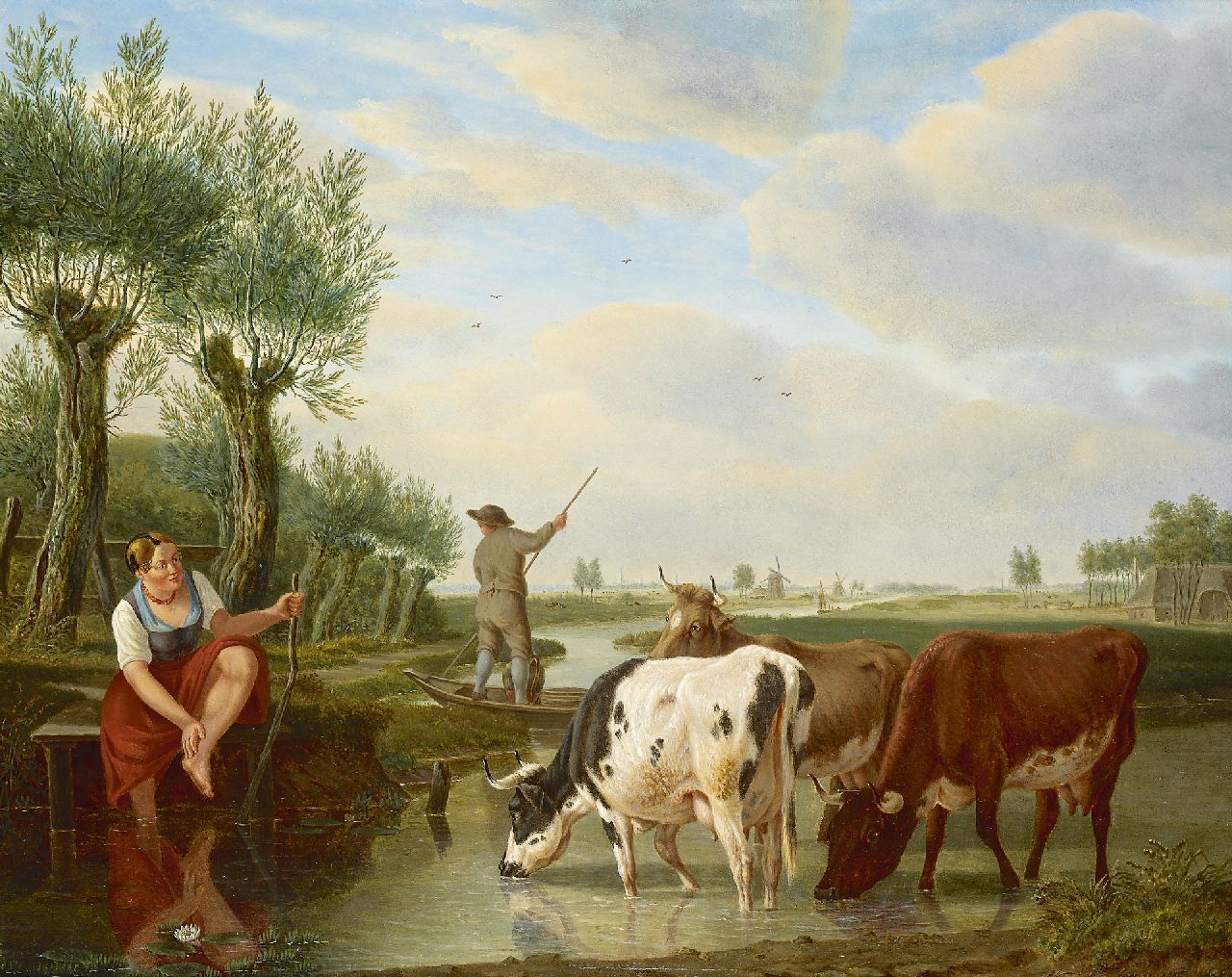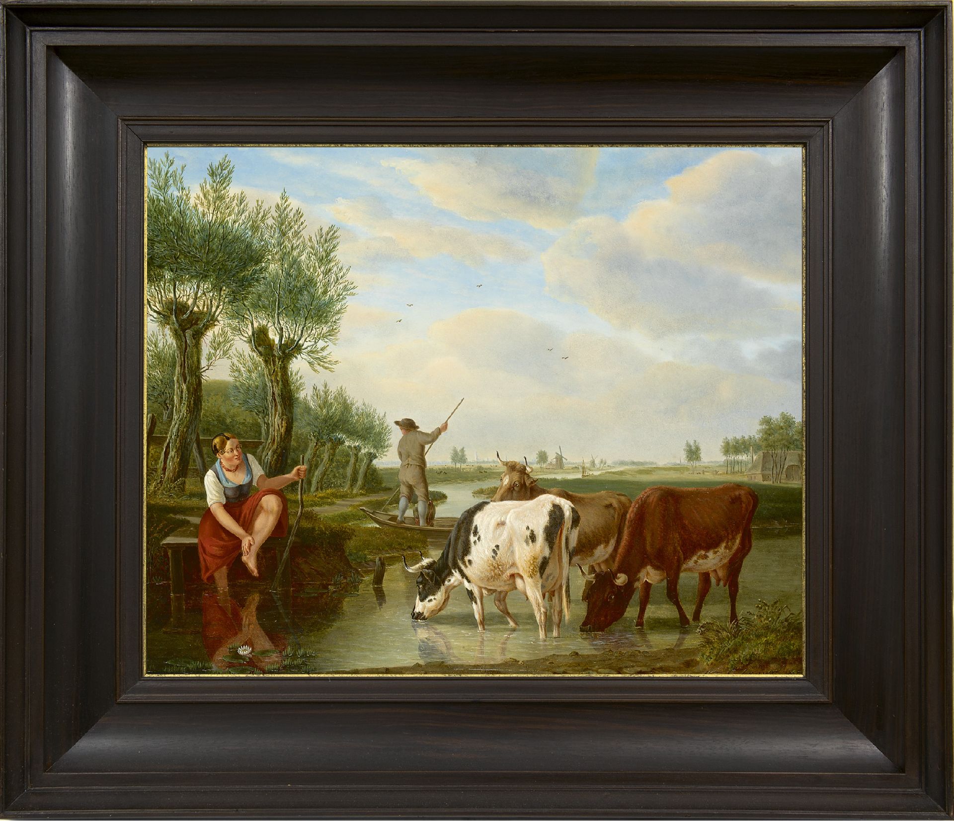 Martinus Kuytenbrouwer kunstwerk • schilderij • te koop Veerman en herderin in Hollands rivierlandschap