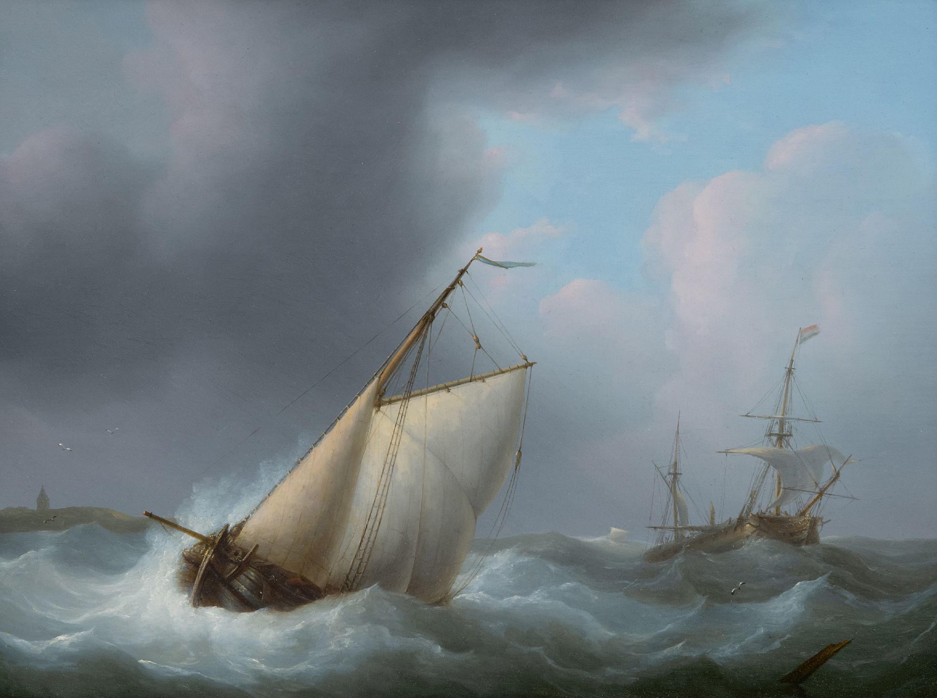 Martinus Schouman kunstwerk • schilderij • voorheen te koop Averij voor de kust in een storm