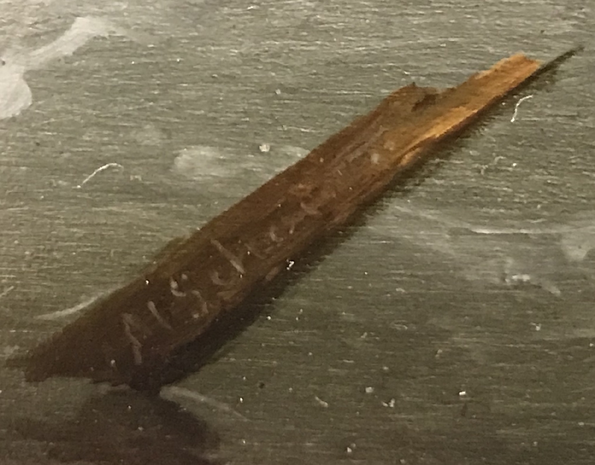 olieverf op paneel 29,3 x 38,7 cm, gesigneerd rechtsonder op drijfhout