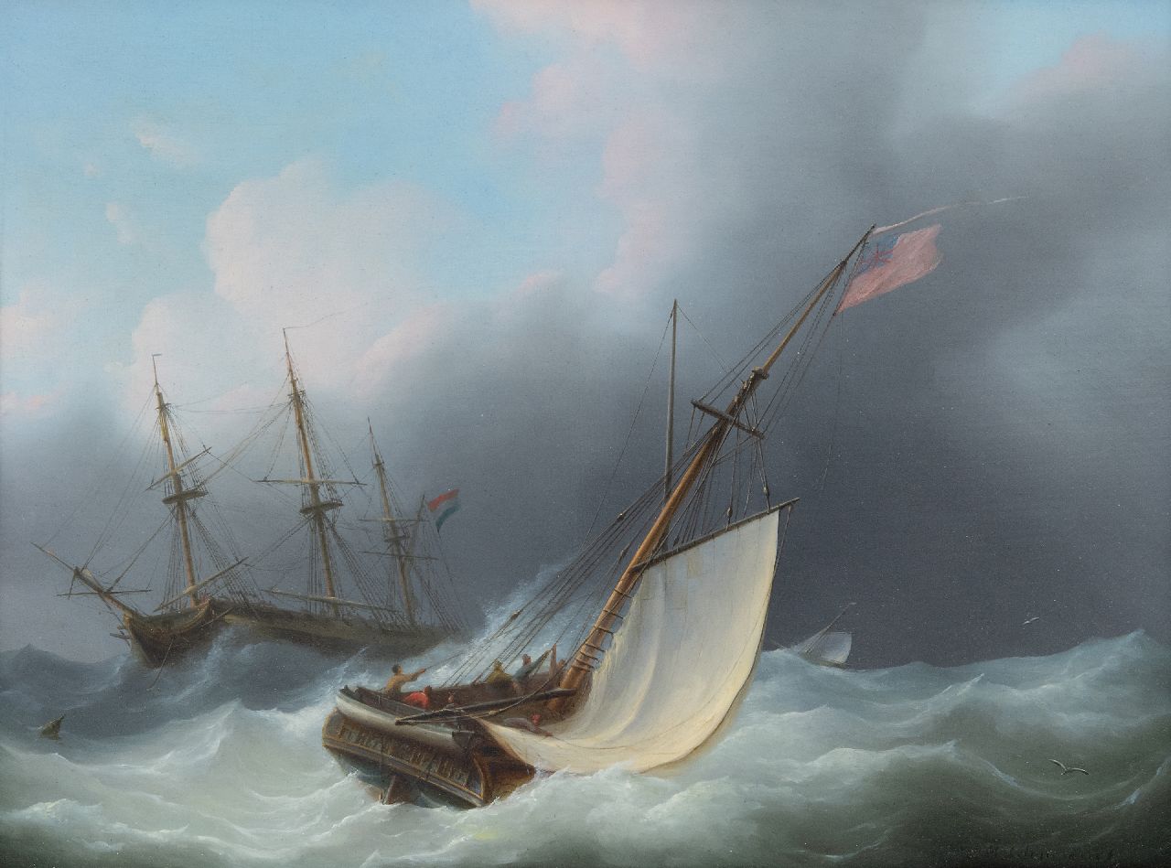 Martinus Schouman kunstwerk • schilderij • voorheen te koop Schepen op woelige zee (pendant van 20317)
