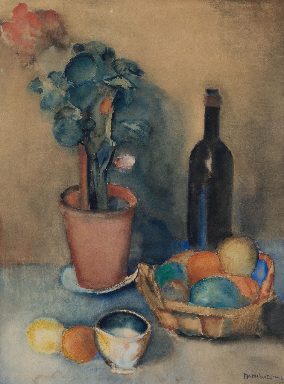 Matthieu Wiegman, broer van Piet Wiegman, was een belangrijk Nederlands expressionist. Hij kreeg zijn opleiding aan de Rijksacademie in Amsterdam en trok daarna in 1911 naar Bergen, waar hij zicht ontwikkelde tot een van de toonaangevende schilders van de Bergense School. Wiegman schilderde vooral figuren, landschappen en stillevens. Soms toont zijn werk in het gebruik van warme, bijna vrolijke kleuren invloed van de Franse schilder Cézanne. In zijn latere leven bracht Wiegman veel tijd in Frankrijk door. Hij maakte ook monumentale wandschilderingen, mozaïeken en glas-in-lood-ramen, dikwijls met religieuze onderwerpen.