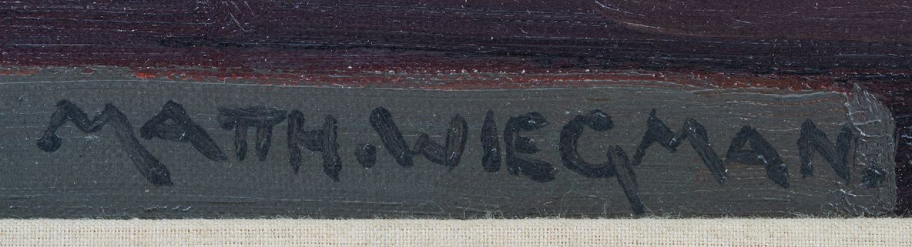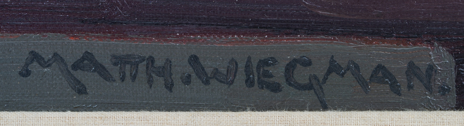 Matthieu Wiegman, broer van Piet Wiegman, was een belangrijk Nederlands expressionist. Zijn opleiding kreeg hij aan de Rijksacademie in Amsterdam o.l.v. A. Allebé en A.J. Derkinderen. In 1911 vestigde hij zich in Bergen waar hij zich ontwikkelde tot een van de vooraanstaande schilders van de Bergense School. Als onderwerp koos hij figuren en landschappen, ook stillevens. Zijn werk is sterk beïnvloed door de Franse schilder Paul Cézanne, die composities van krachtig gevormde, strak omlijnde kleurvlakken maakte. Tussen 1922 en 1936 woonde Wiegman in Parijs, Bretagne en de Provence waar zijn palet won aan licht en intensiteit. Daarna keerde hij terug naar Bergen. Musea: o.a. Haags Gemeentemuseum en Rijksmuseum Kröller-Müller in Otterlo.