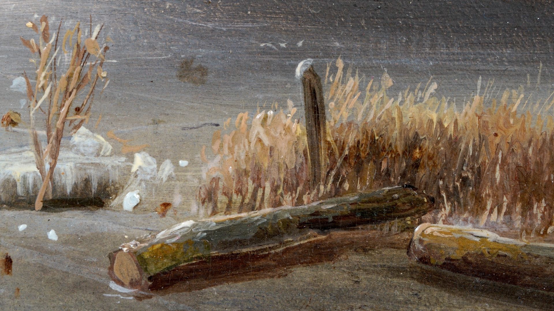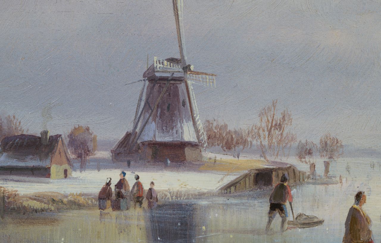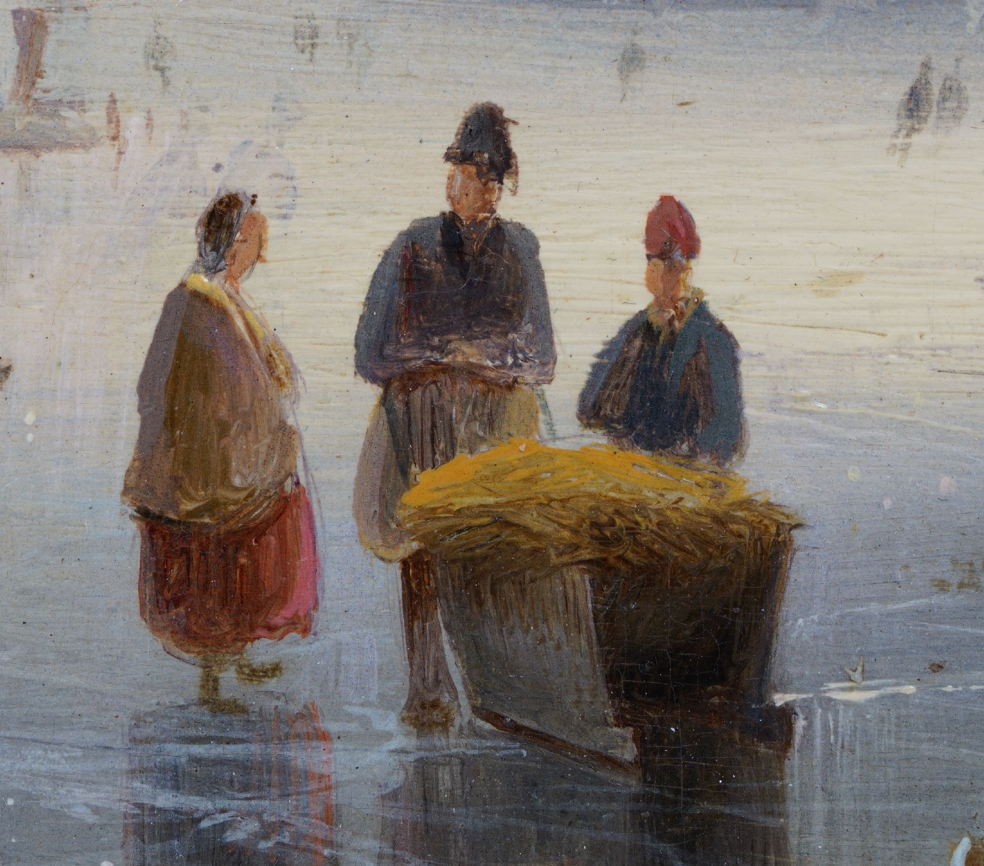 Mattias Parré | Schaatsvertier op de gracht, olieverf op paneel, 22,0 x 30,1 cm