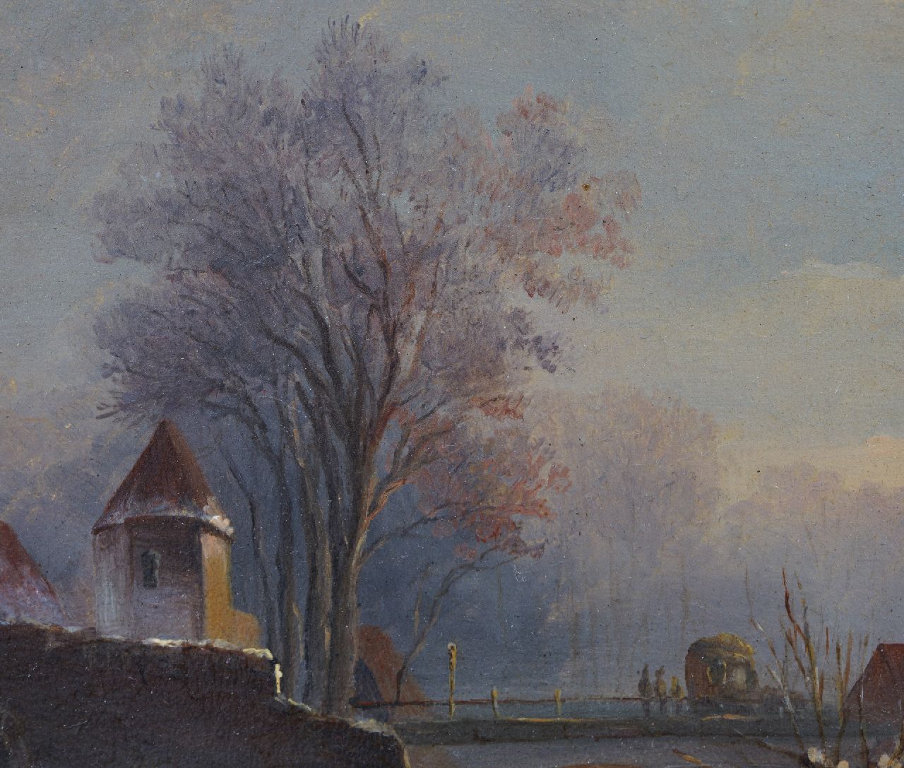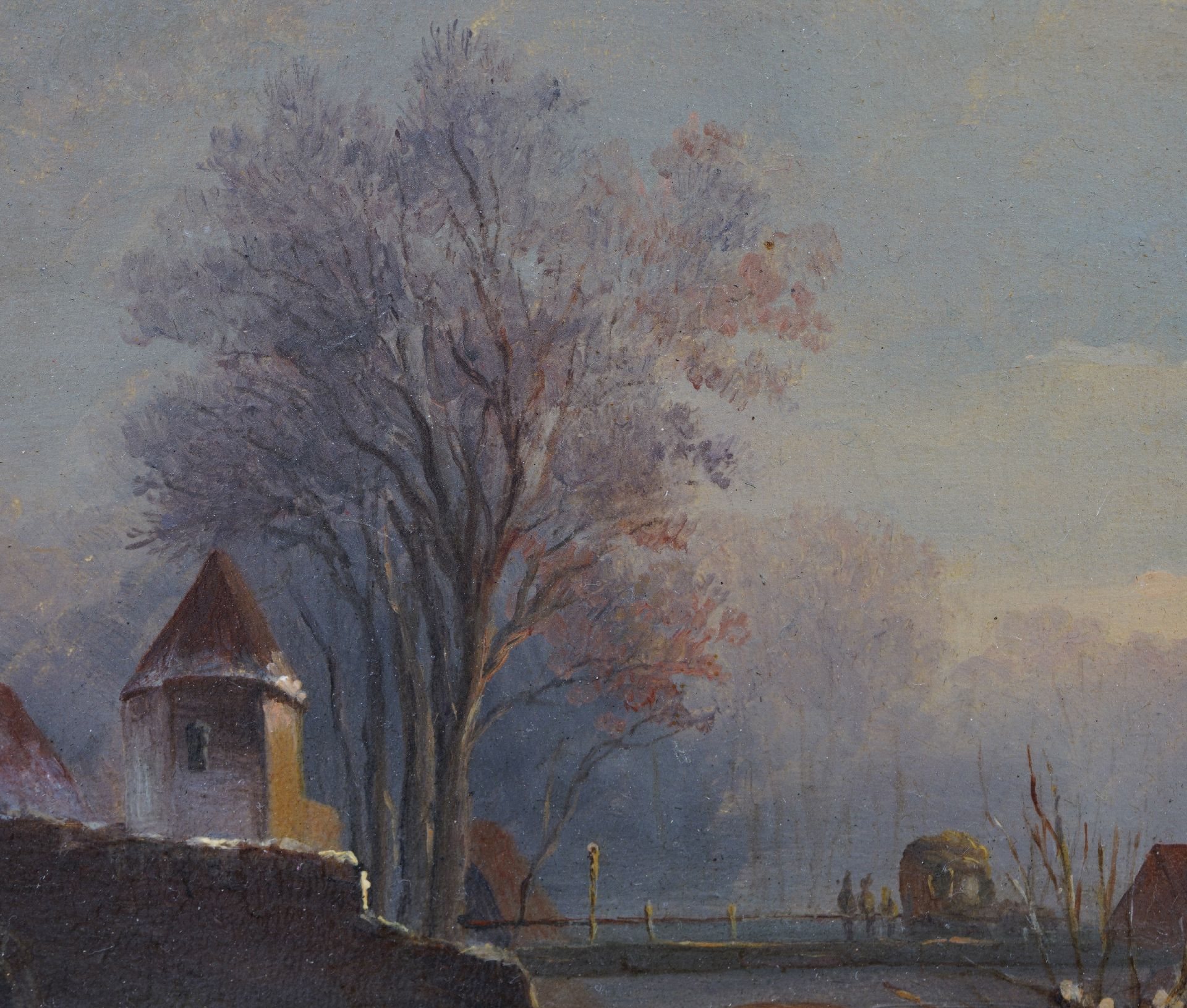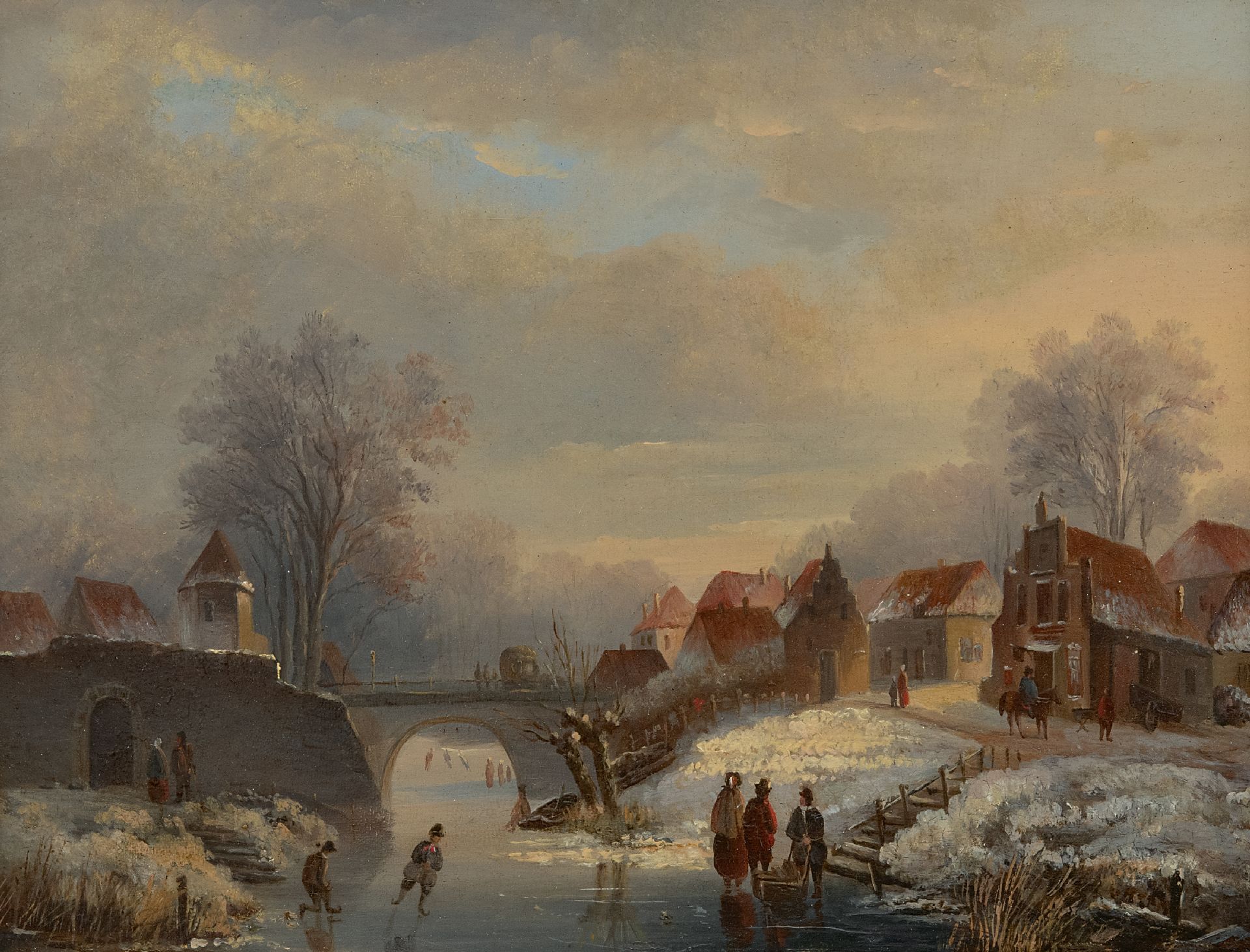 Mattias Parré kunstwerk • schilderij • te koop Schaatsvertier op de gracht