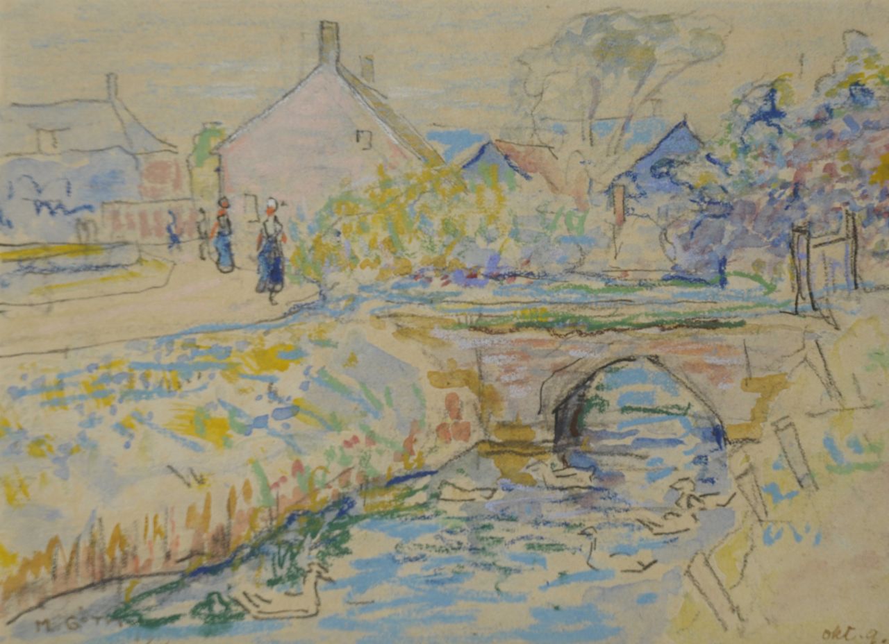 Maurice Góth kunstwerk • aquarel • tekening • voorheen te koop Dorpje op Walcheren