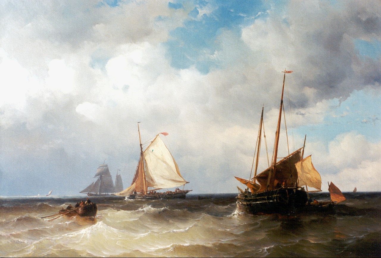 Maurits Frederik Hendrik de Haas kunstwerk • schilderij • voorheen te koop Zeilende vissersschepen en sloep op volle zee