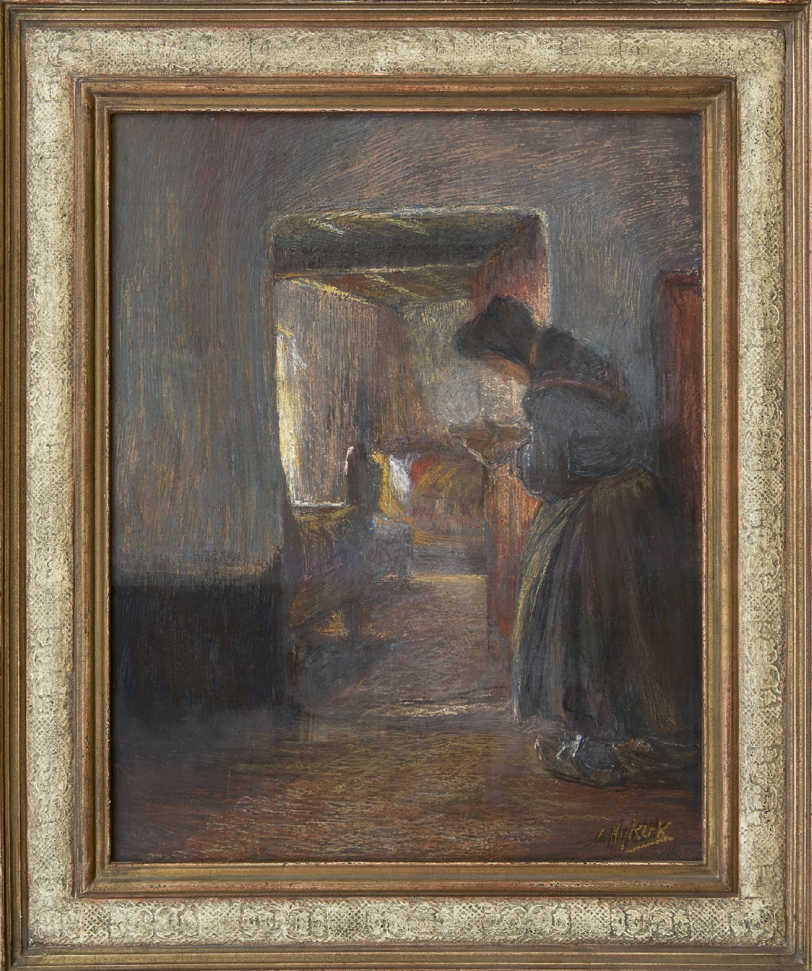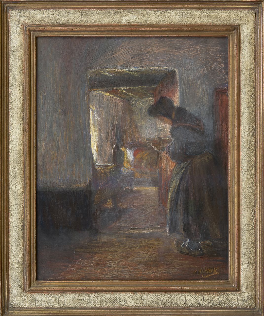 pastel en olieverf op doek 55,4 x 43,3 cm, gesigneerd rechtsonder