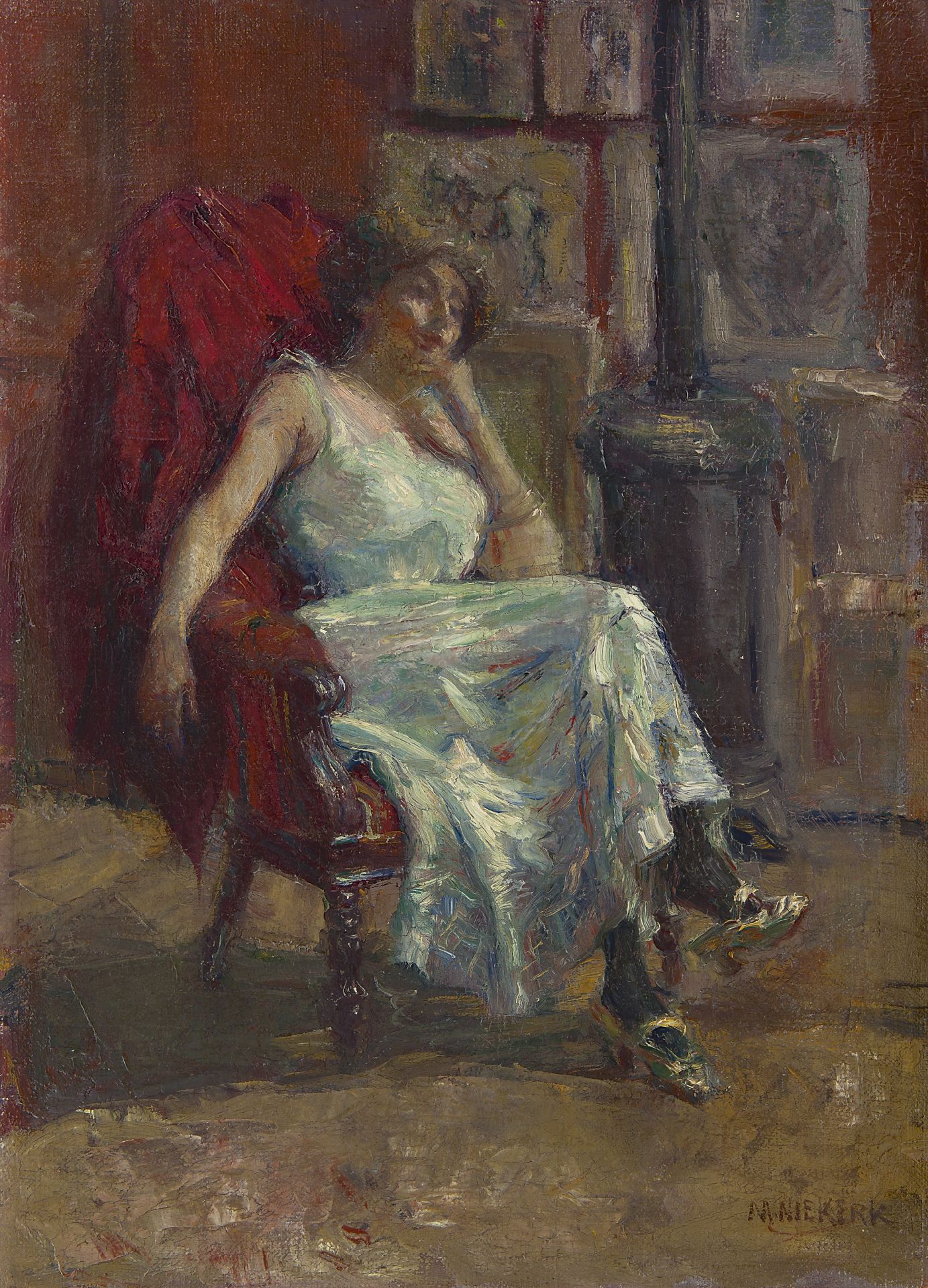 Maurits Niekerk kunstwerk • schilderij • voorheen te koop Model in het atelier van de schilder