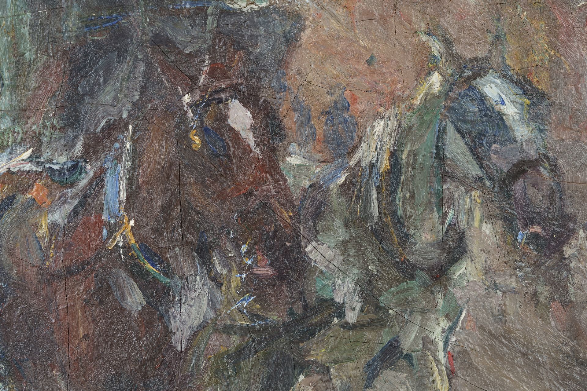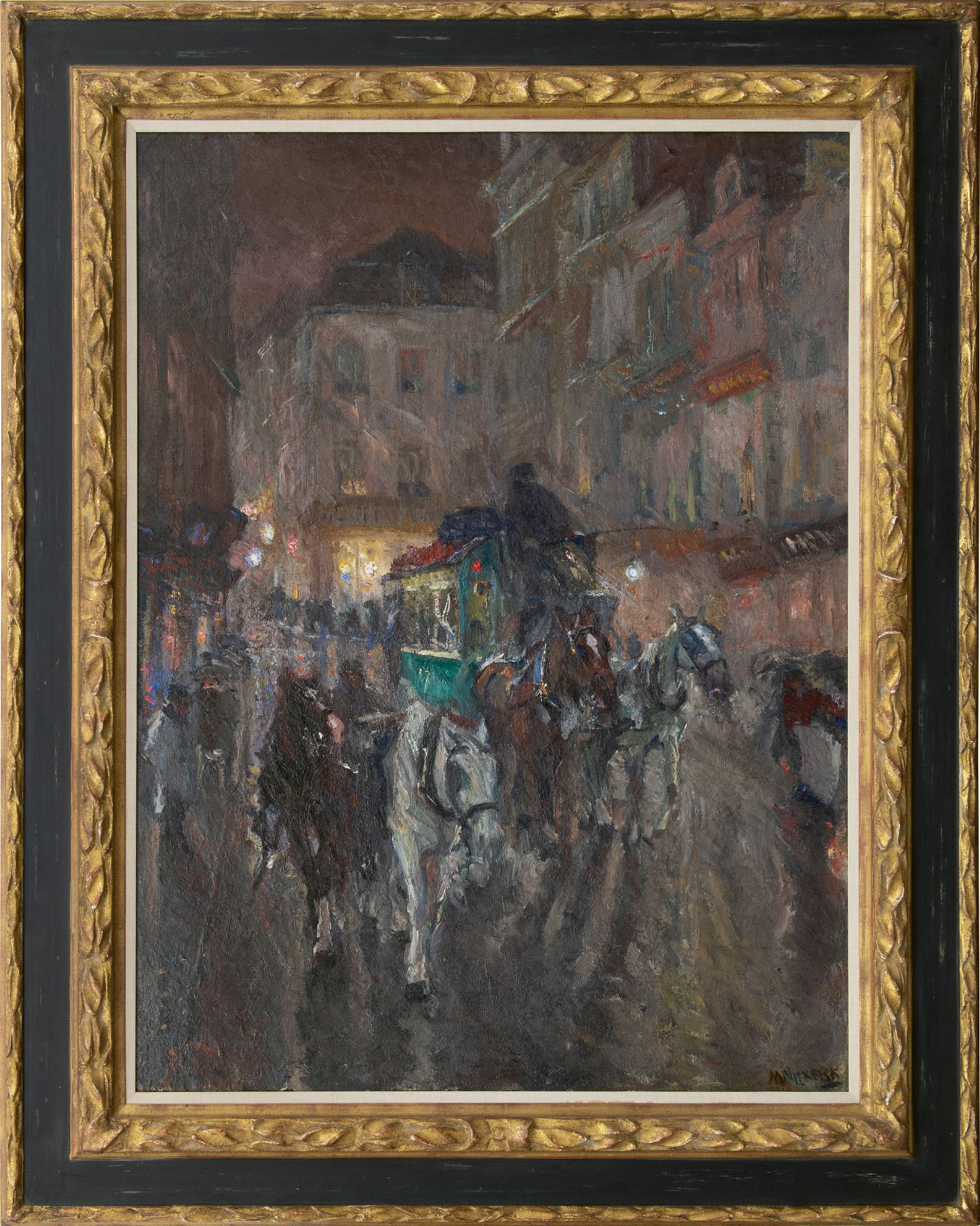 Maurits Niekerk kunstwerk • schilderij • te koop Omnibus in de stad bij avond