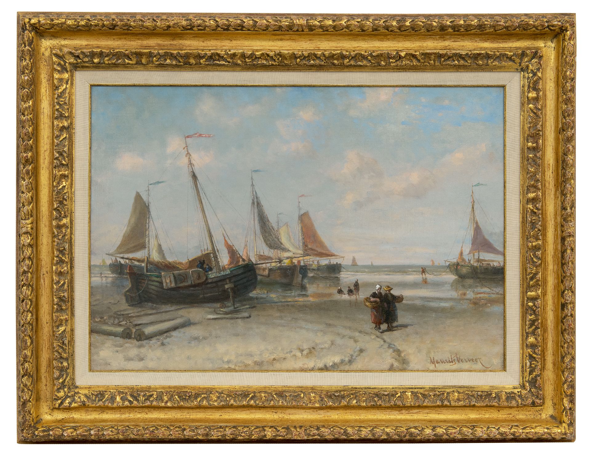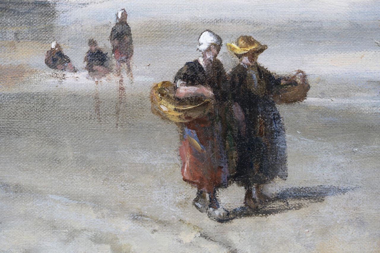 Maurits Verveer kunstwerk • schilderij • te koop Vissersvrouwen bij pinken langs de vloedlijn