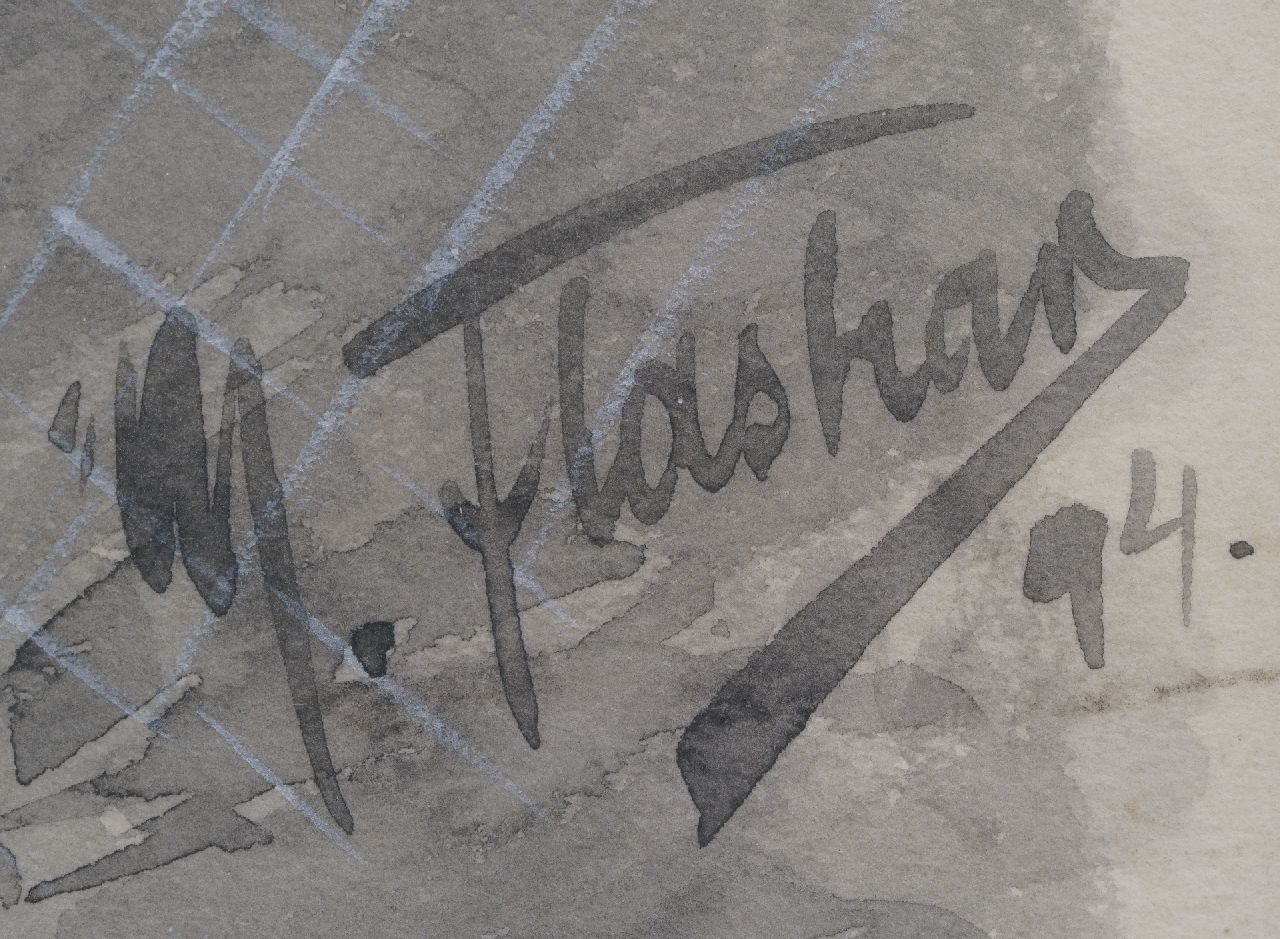 aquarel op papier 51,5 x 41,5 cm, gesigneerd rechtsonder en gedateerd '94