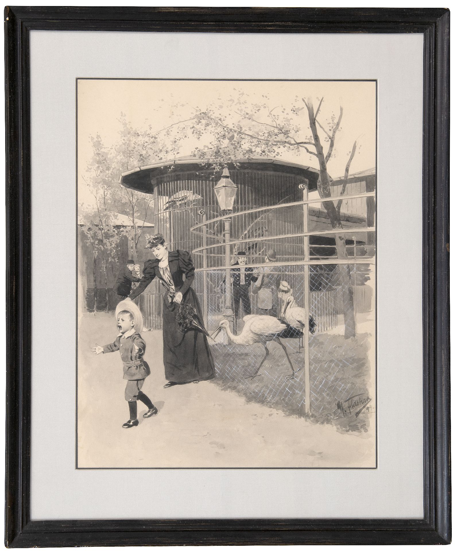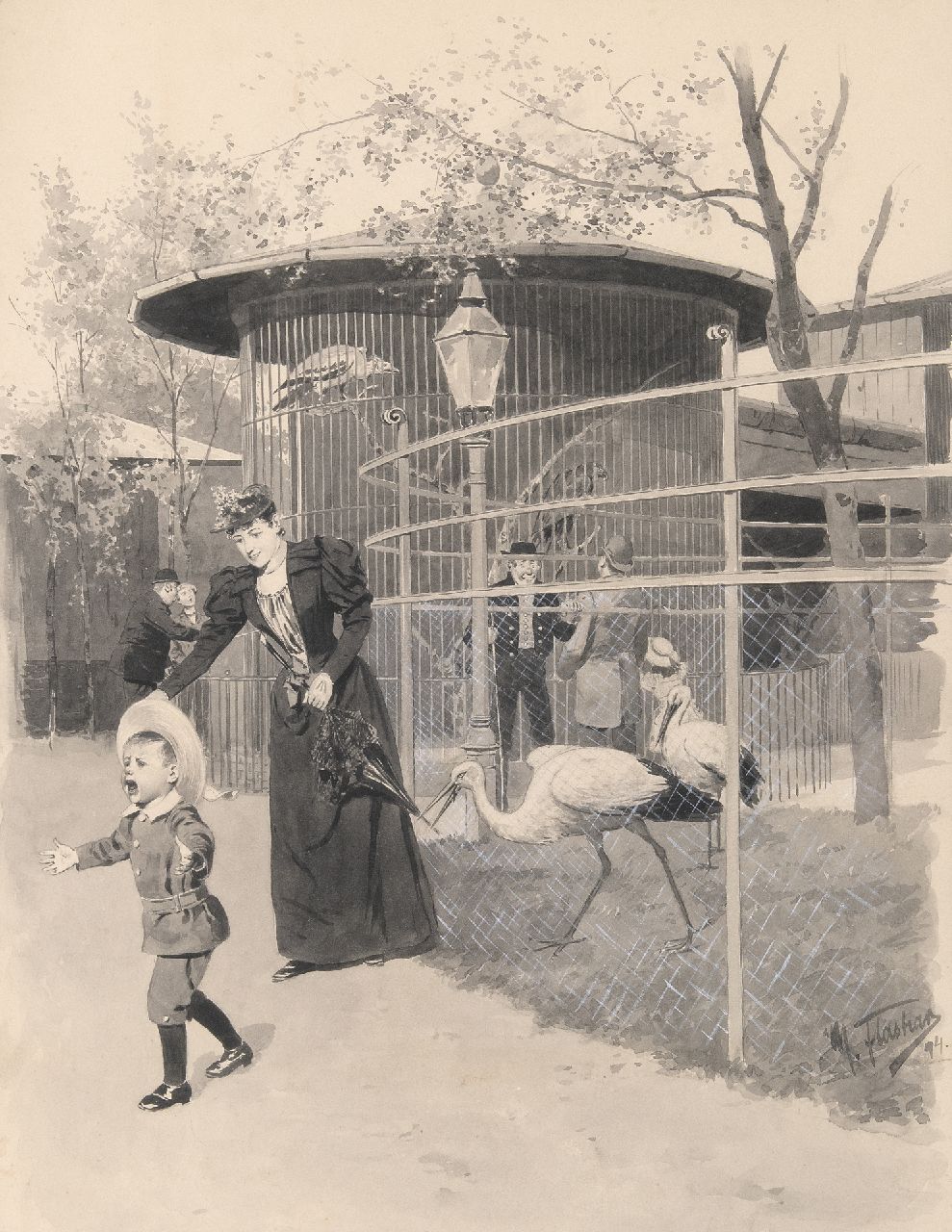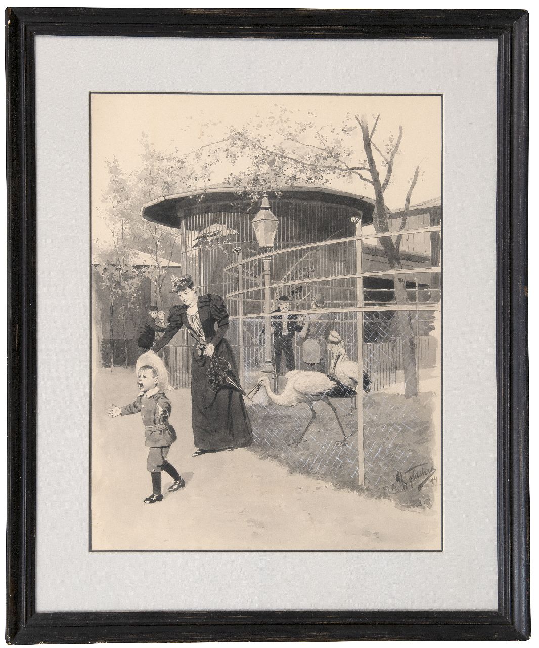 Max Flashar | In de dierentuin, aquarel op papier, 37,0 x 27,0 cm, gesigneerd r.o. en gedateerd '88