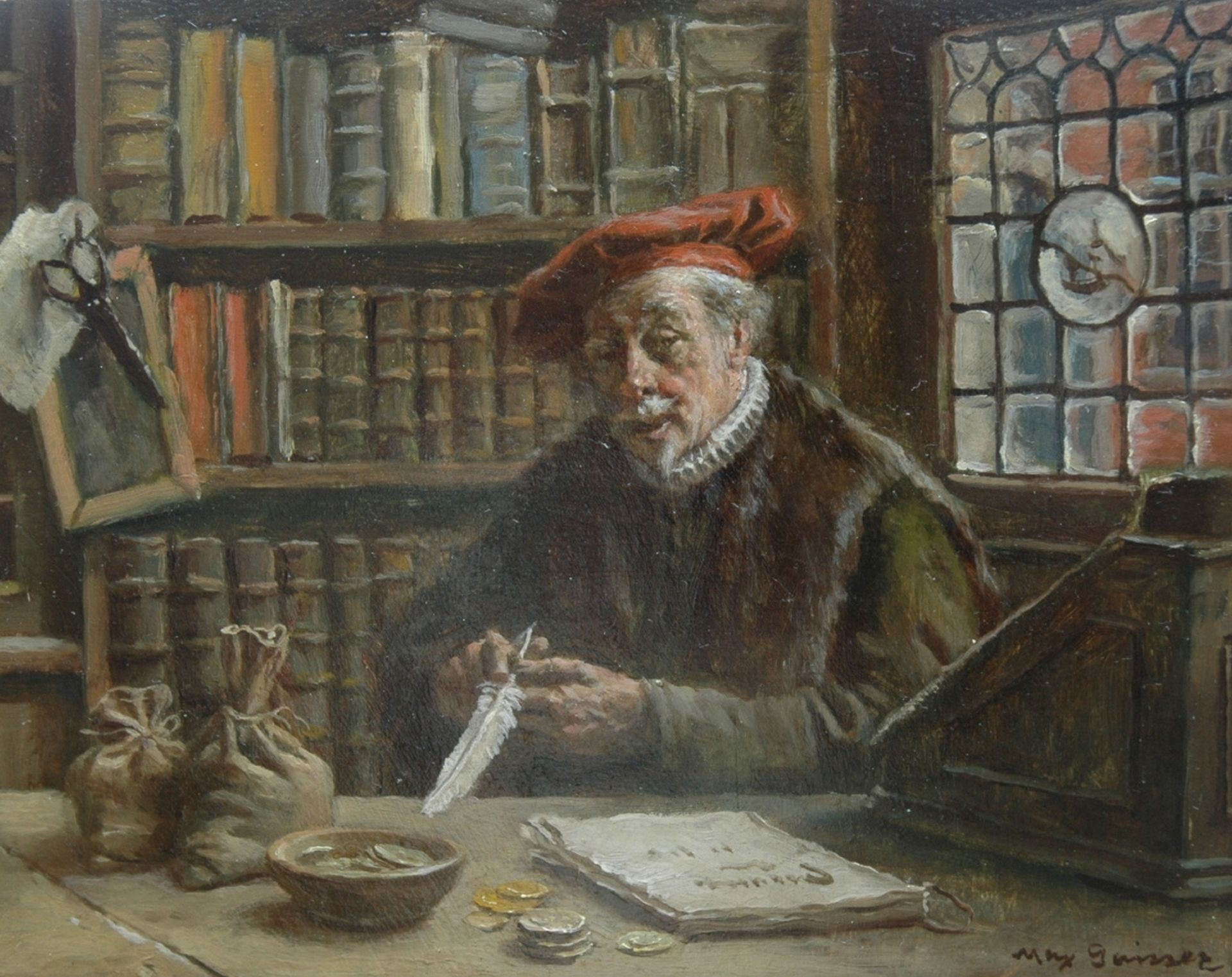 Max Gaisser kunstwerk • schilderij • voorheen te koop De geldwisselaar