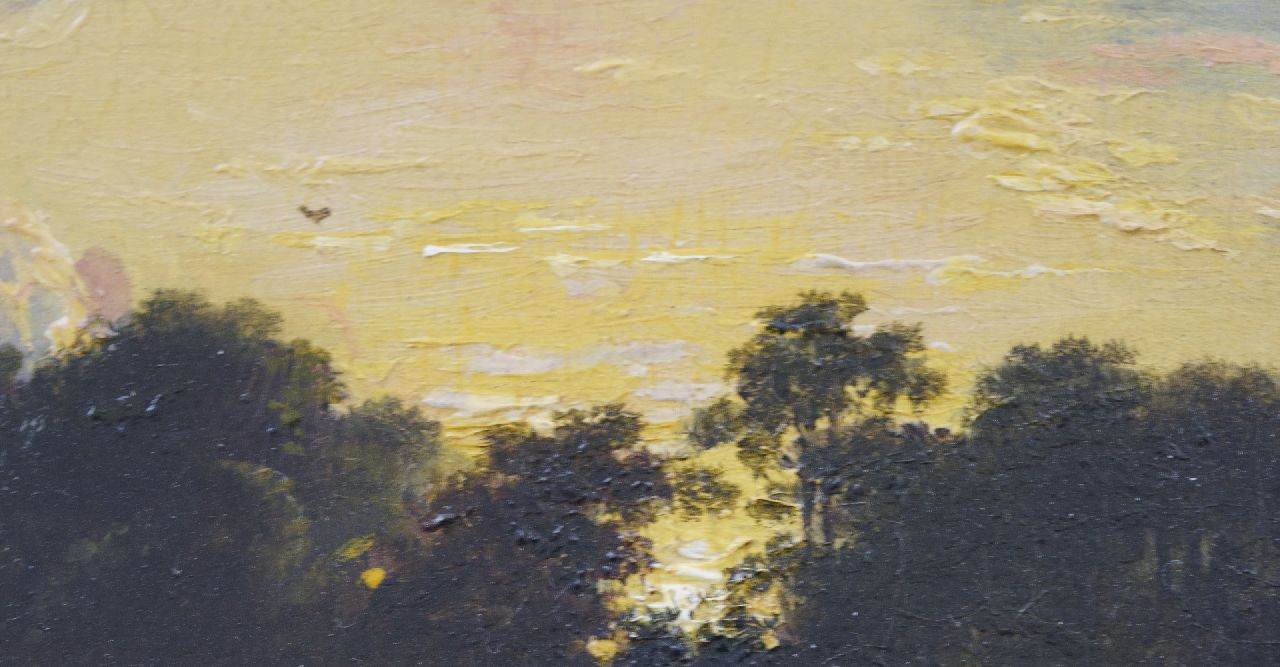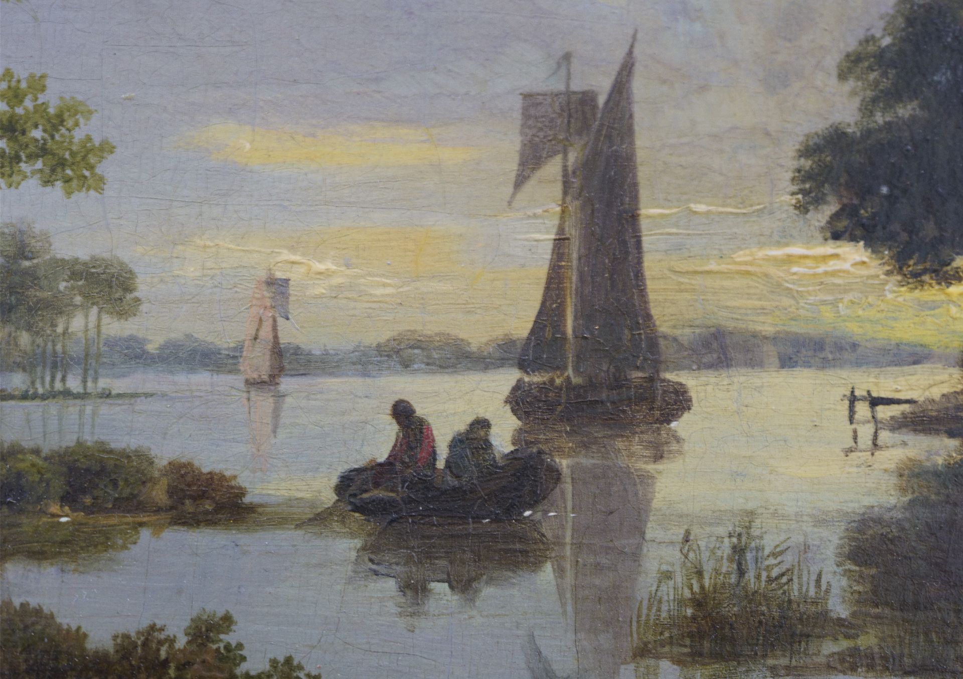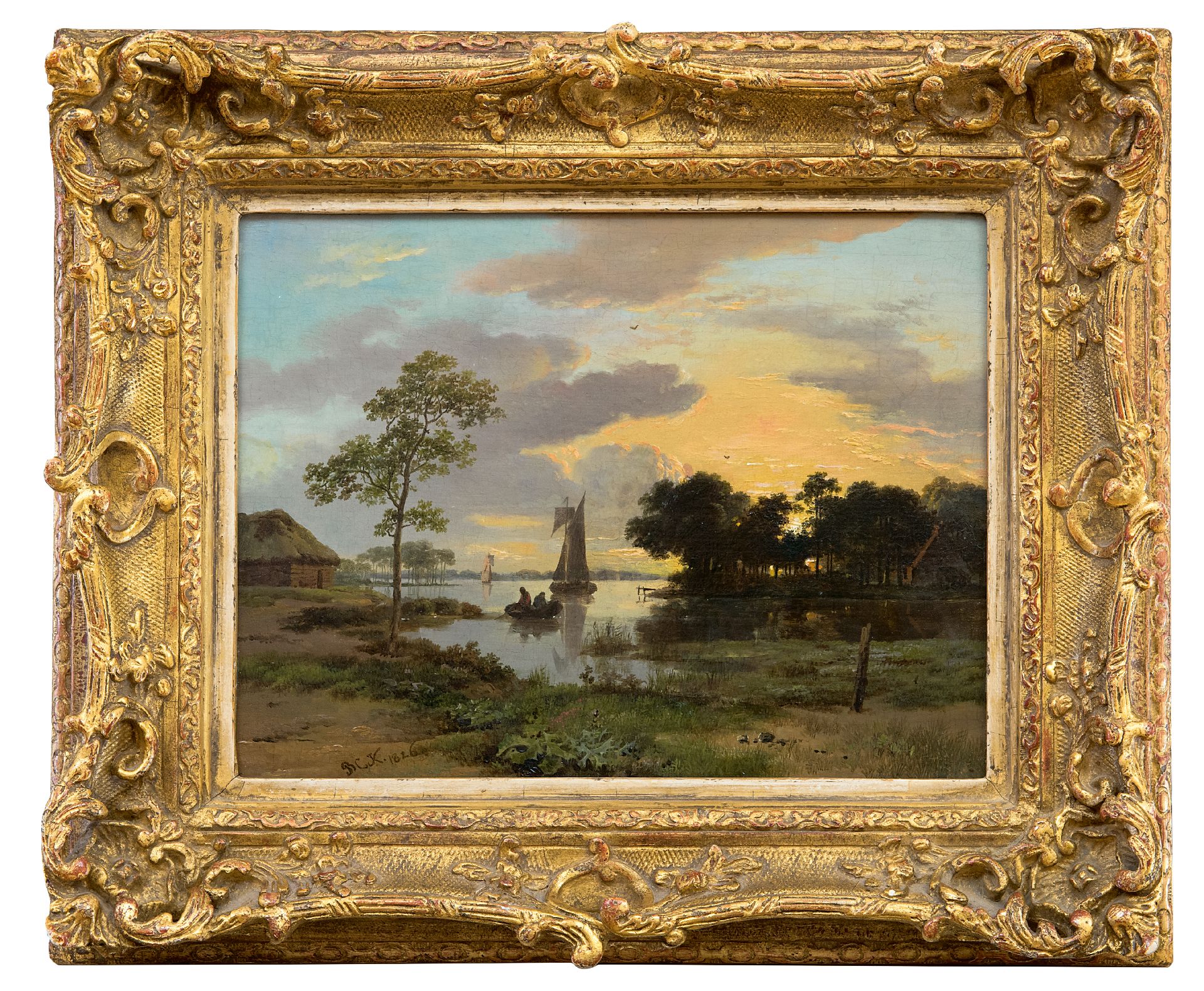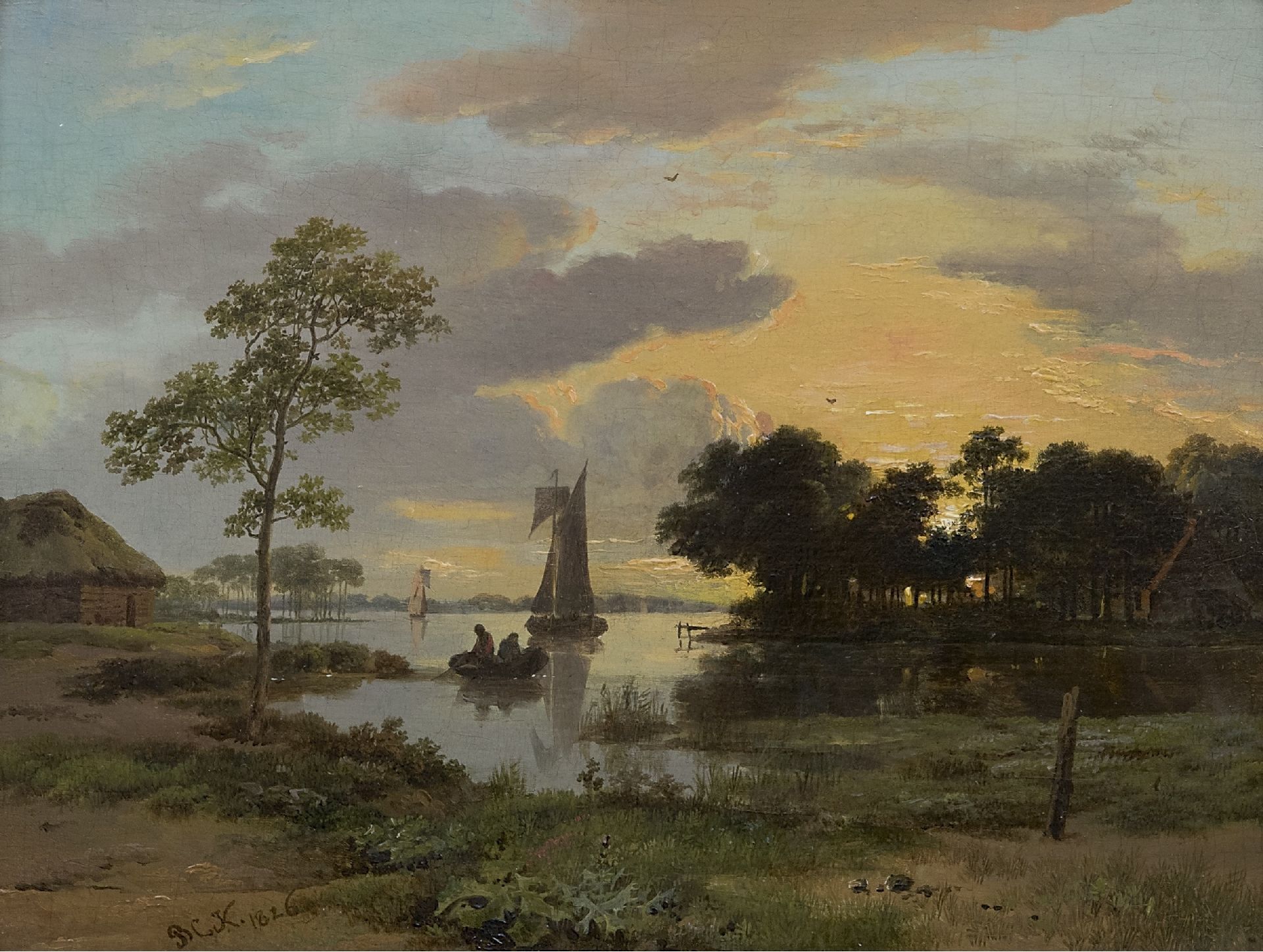 Michiel van den Broek kunstwerk • schilderij • te koop Rivierlandschap bij avond