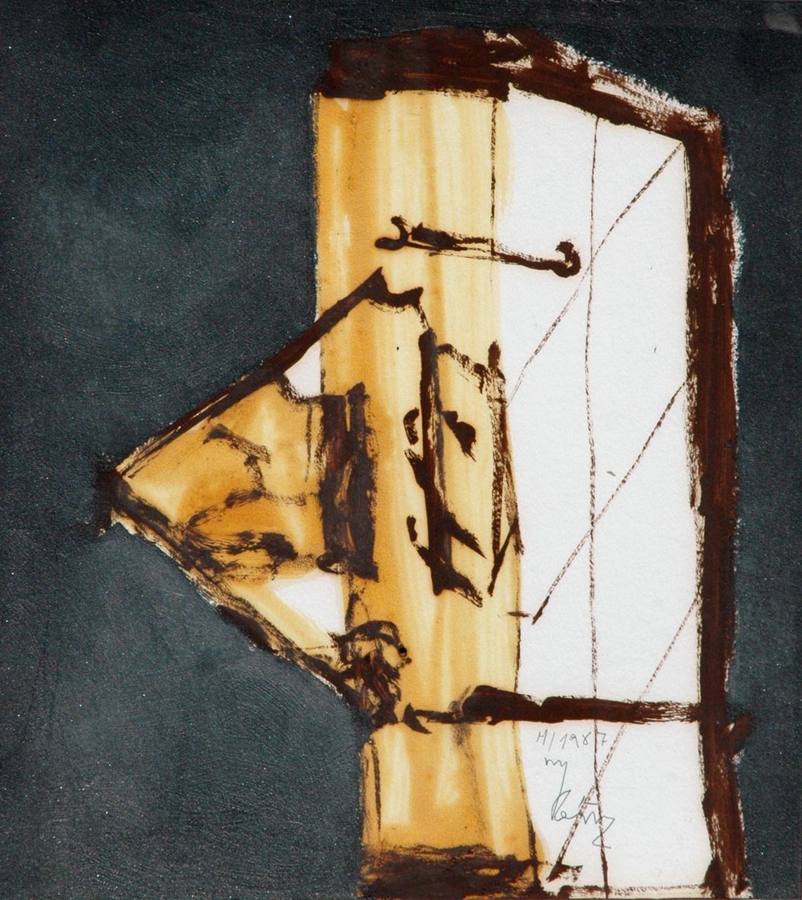 gouache en olie op papier 44,5 x 39,5 cm, gesigneerd rechtsonder en gedateerd 1987