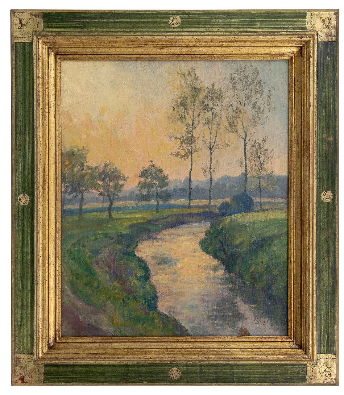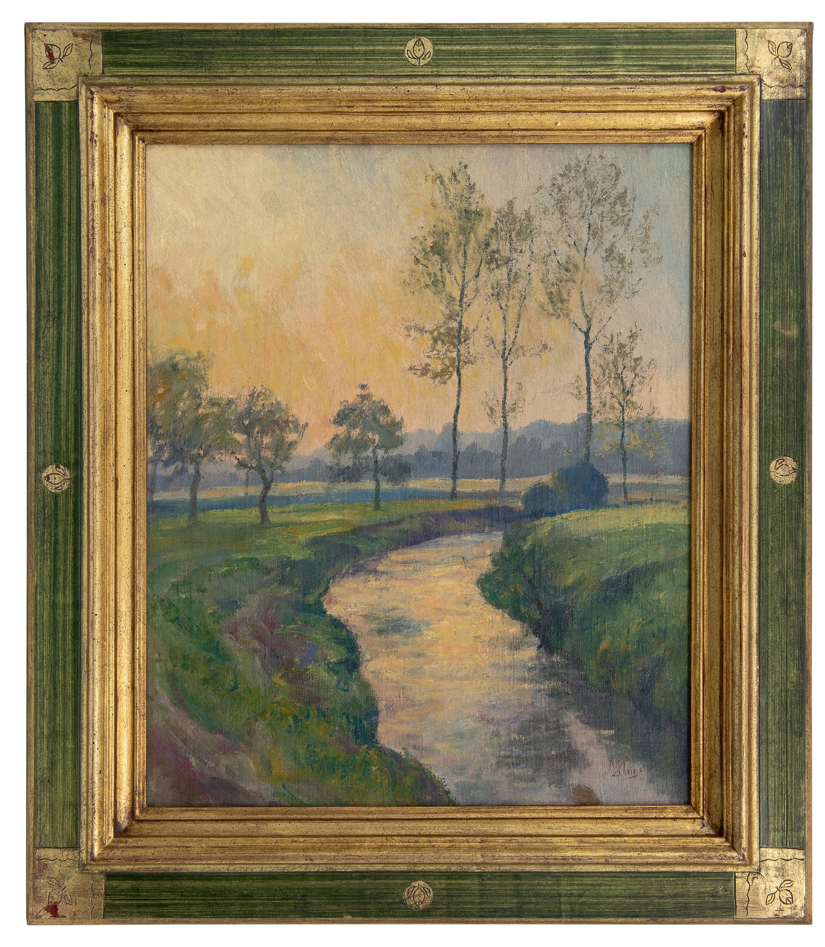 Modest Huys kunstwerk • schilderij • te koop Vlaams rivierlandschap (vermoedelijk de Mandel of de Leie)