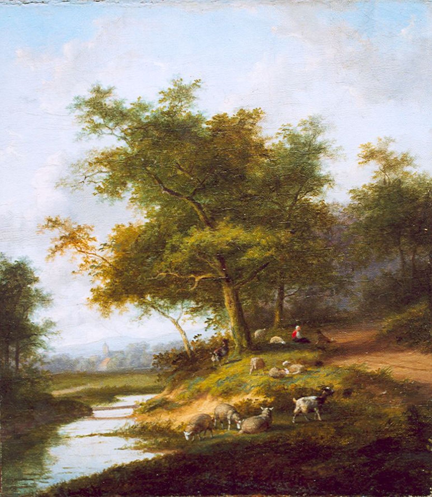 Morel II J.E./Van Severdonck F. kunstwerk • schilderij • voorheen te koop Rustend herderinnetje met haar kudde