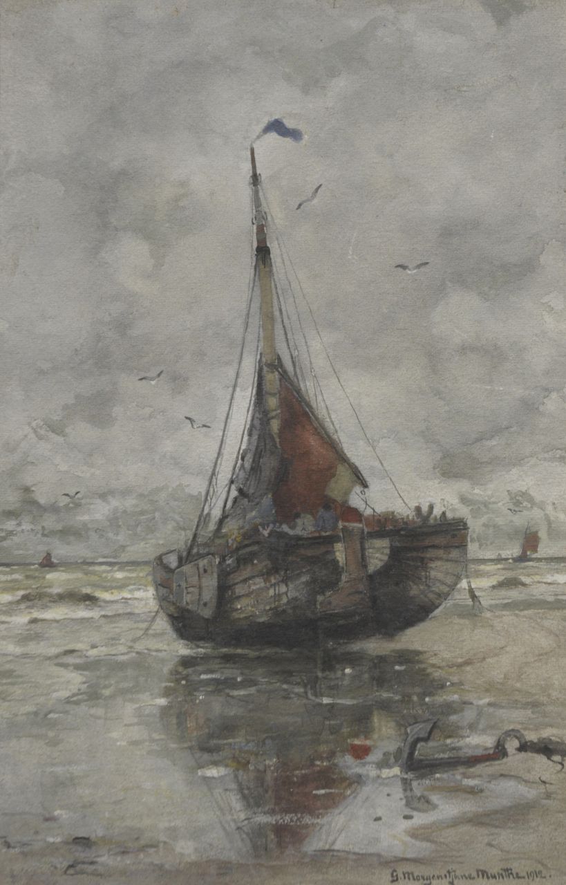 Morgenstjerne Munthe kunstwerk • aquarel • tekening • voorheen te koop Bomschuit op het strand