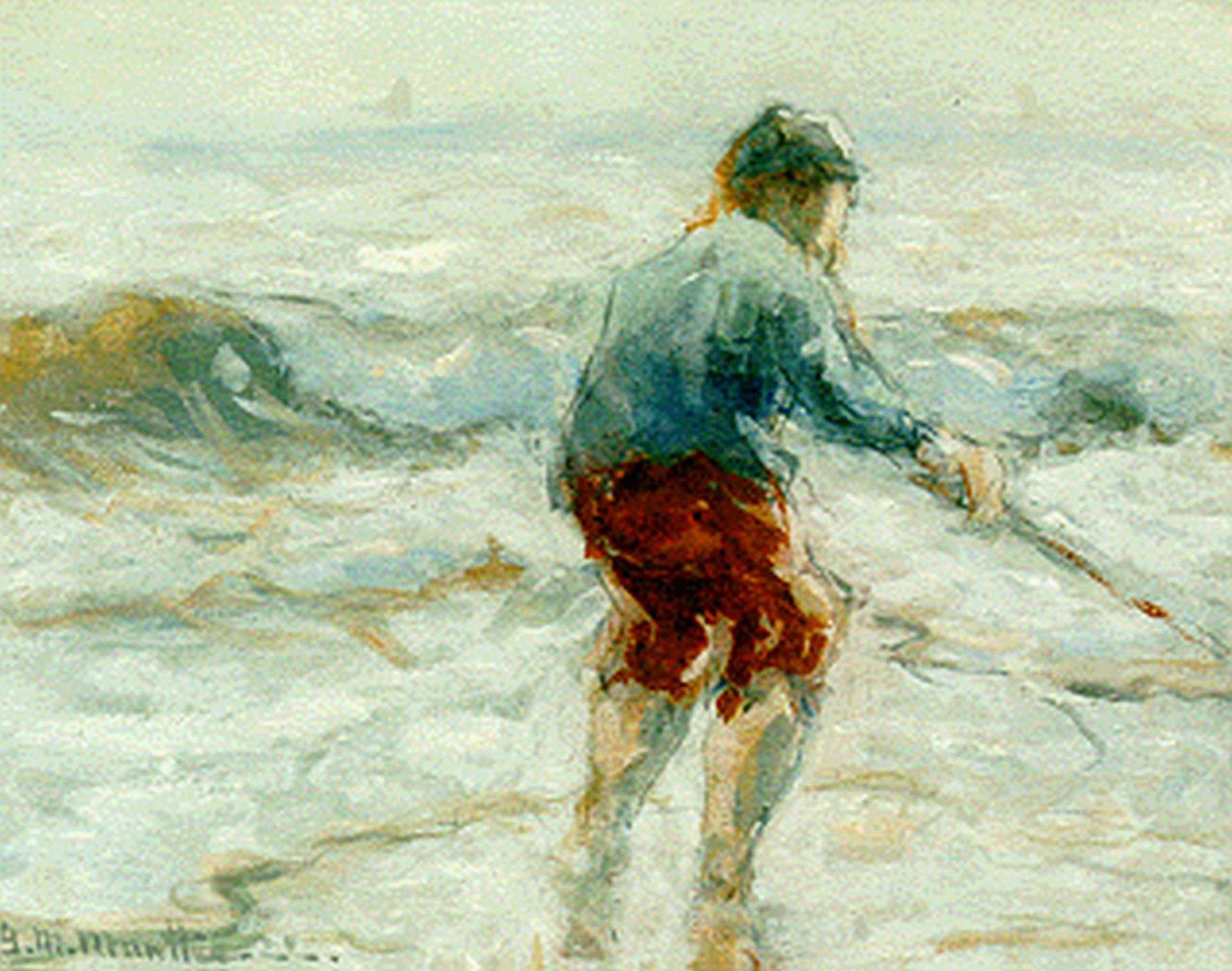 Morgenstjerne Munthe kunstwerk • aquarel • tekening • voorheen te koop De schelpenvisser