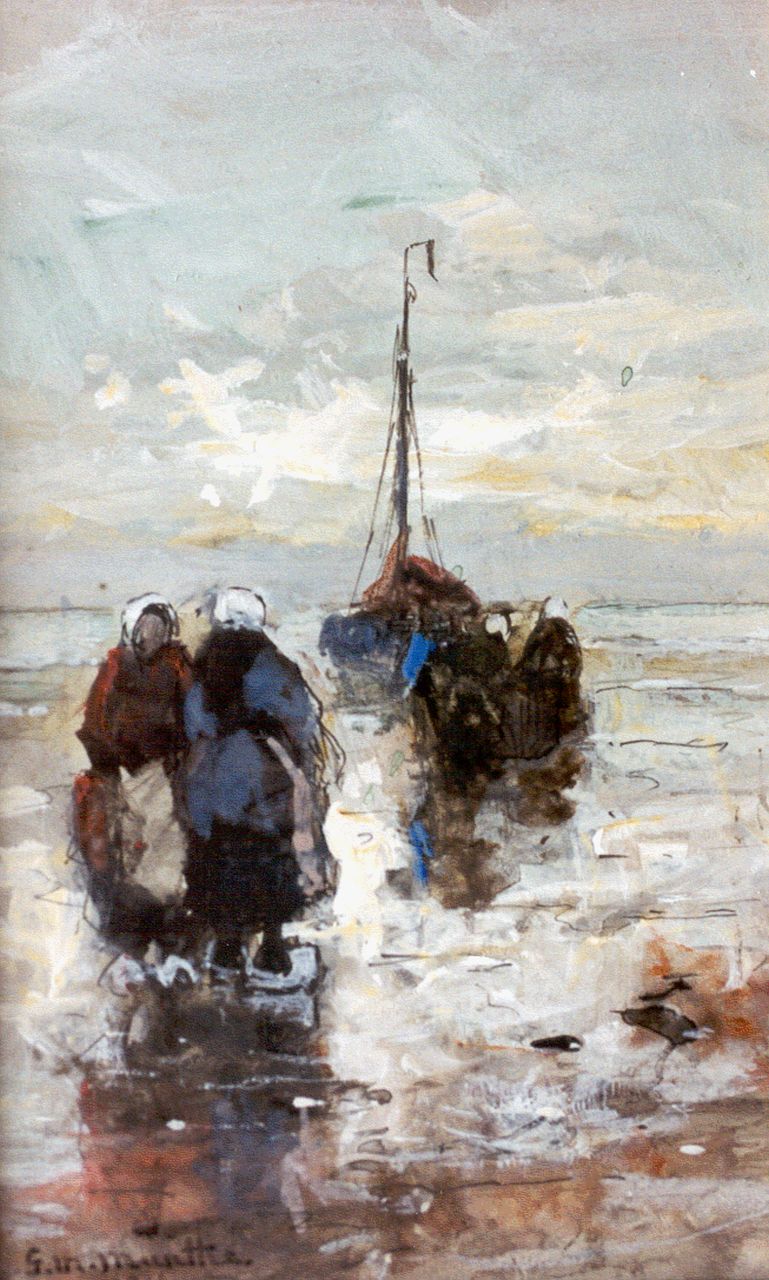 Morgenstjerne Munthe kunstwerk • aquarel • tekening • voorheen te koop Vissersvrouwen op het strand van Katwijk