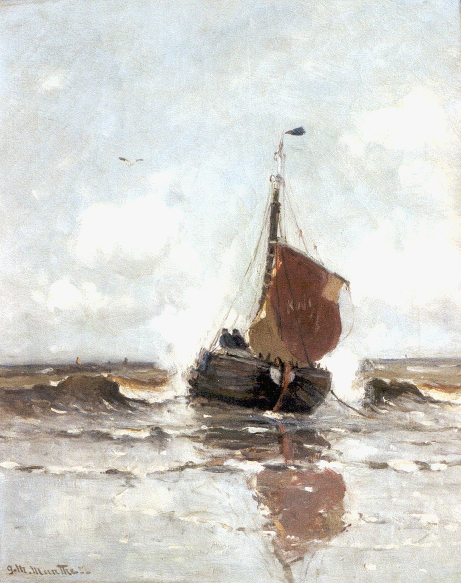 Morgenstjerne Munthe kunstwerk • schilderij • voorheen te koop Aankomende Katwijkse bomschuit