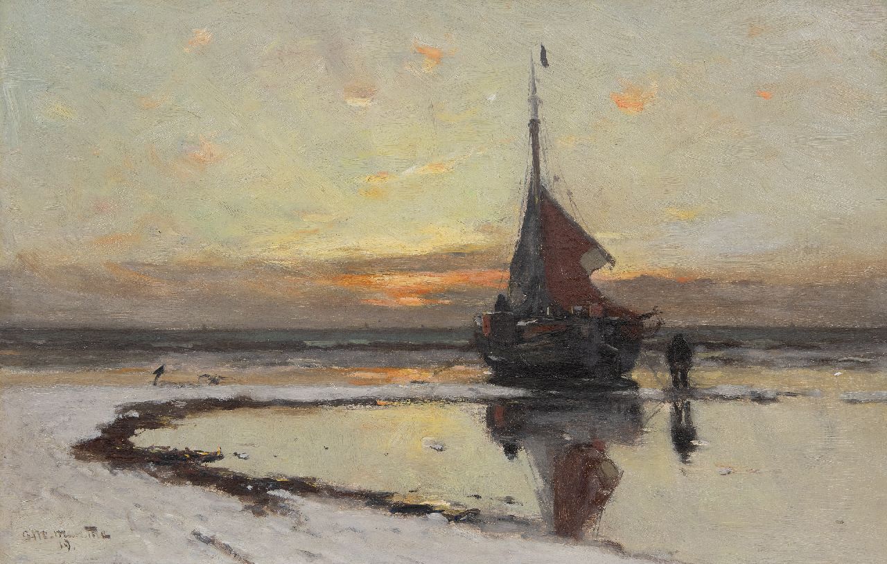 Morgenstjerne Munthe kunstwerk • schilderij • voorheen te koop Avondstemming op het strand van Katwijk