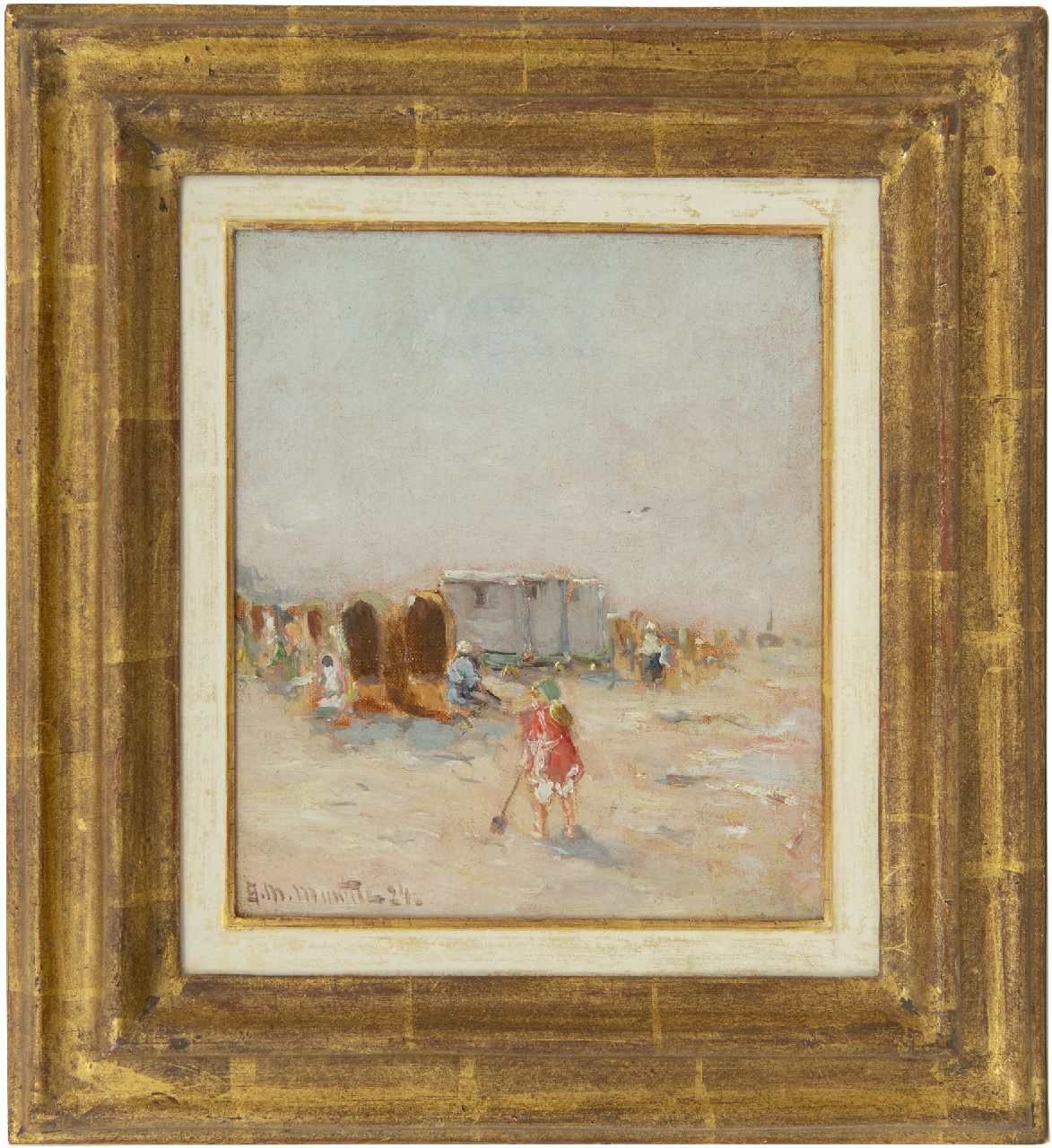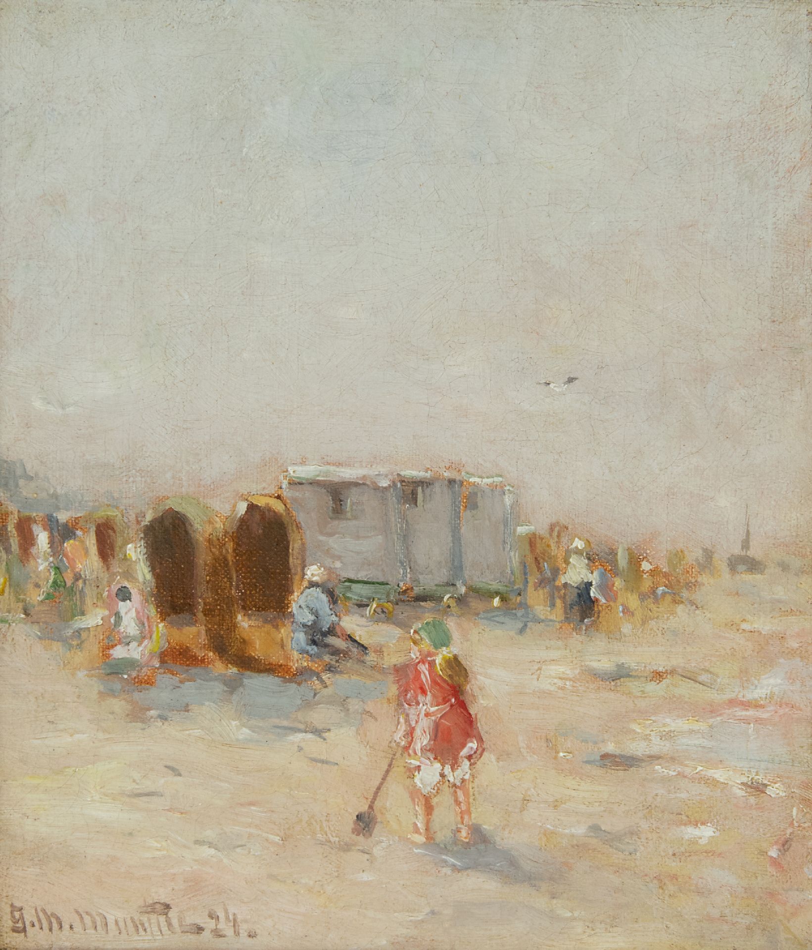 Morgenstjerne Munthe kunstwerk • schilderij • voorheen te koop Badgasten en vissersvolk op het strand