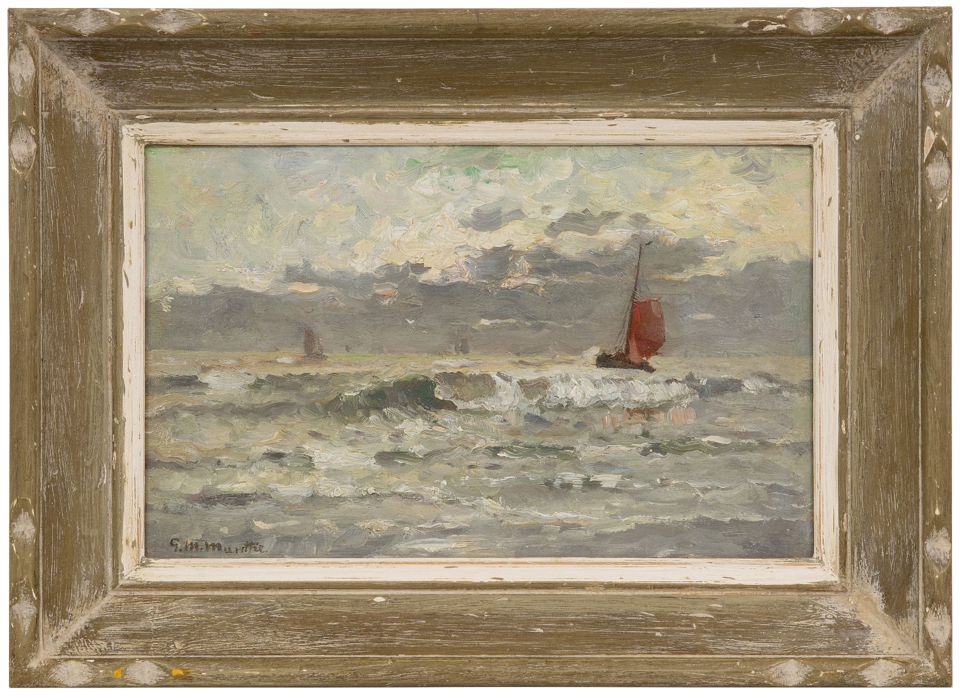 Morgenstjerne Munthe | Bomschuit voor anker, olieverf op doek, 62,9 x 96,4 cm, gesigneerd l.o.