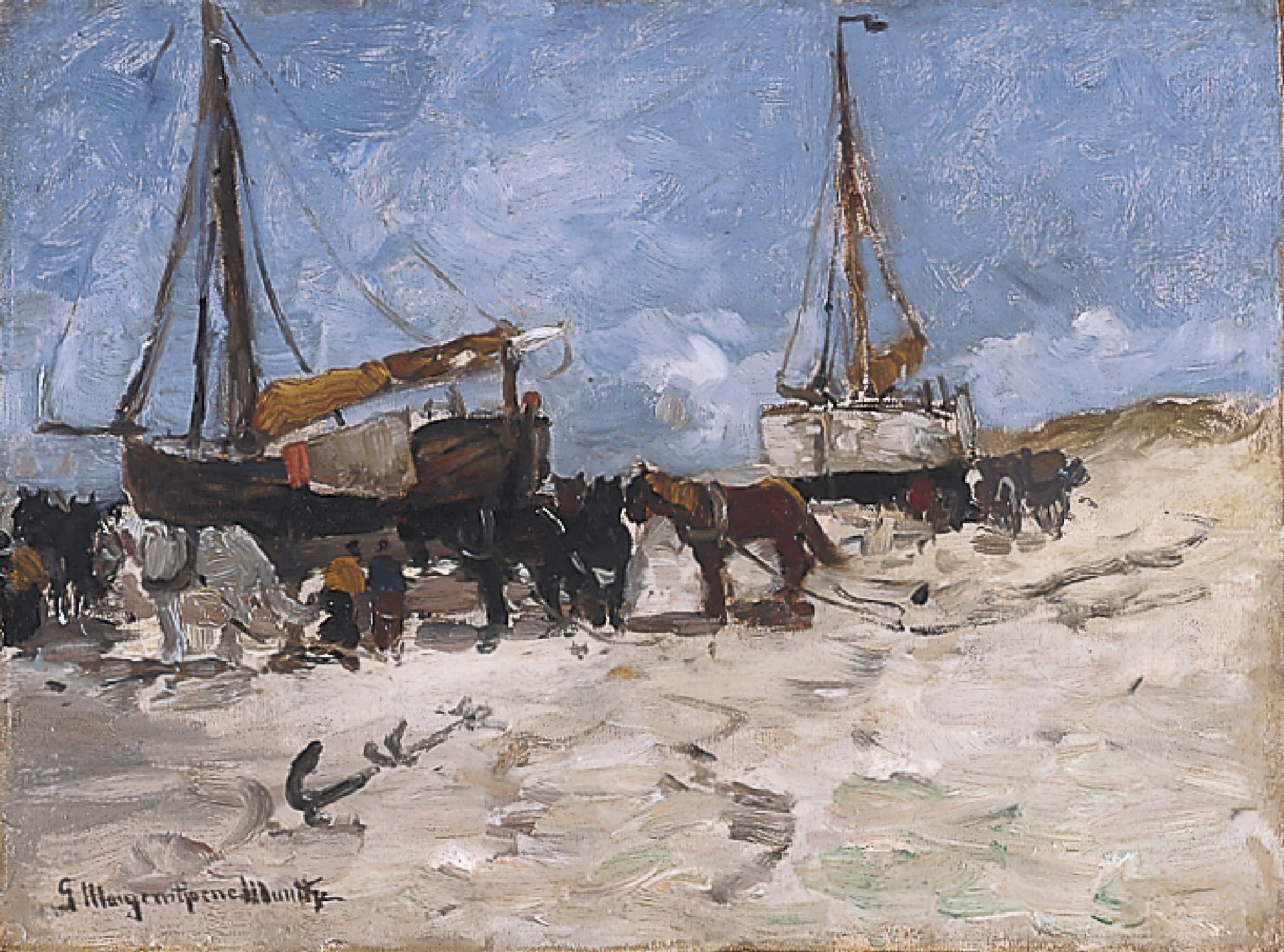 Gerhard Munthe, oorspronkelijk afkomstig uit Noorwegen, volgde een opleiding aan de kunstacademie in Düsseldorf, waar hij belangstelling kreeg voor het schilderen van strandgezichten. In 1901 vestigde hij zich in het vissersdorp Katwijk, populair bij schilders uit die tijd. Katwijk was een van de laatste vissersdorpen aan de Hollandse kust waar nog gevist werd vanaf het strand. De verhuizing bracht hem dicht bij de zee en het strand, wat veel inspiratie opleverde voor zijn schilderijen. Gerhard voegde al vroeg het poëtische Noorse woord 'Morgenstjerne' (Morningstar) aan zijn naam toe om zich te onderscheiden van zijn oom en naamgenoot Gerhard Peter Frantz Wilhelm Munthe, destijds een bekende Noorse landschapsschilder.
