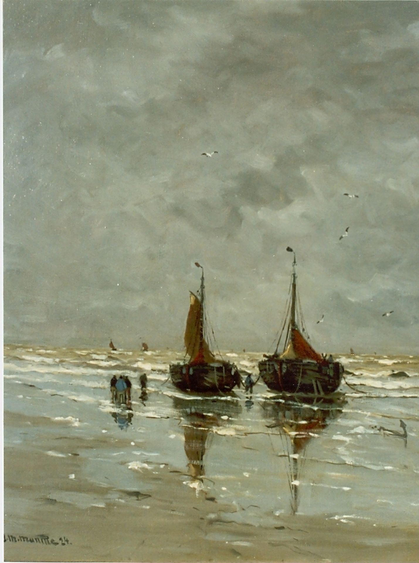 Morgenstjerne Munthe kunstwerk • schilderij • voorheen te koop Bommen en vissersvolk op het strand