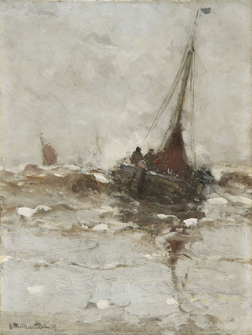 Morgenstjerne Munthe kunstwerk • schilderij • voorheen te koop Bomschuit in de branding