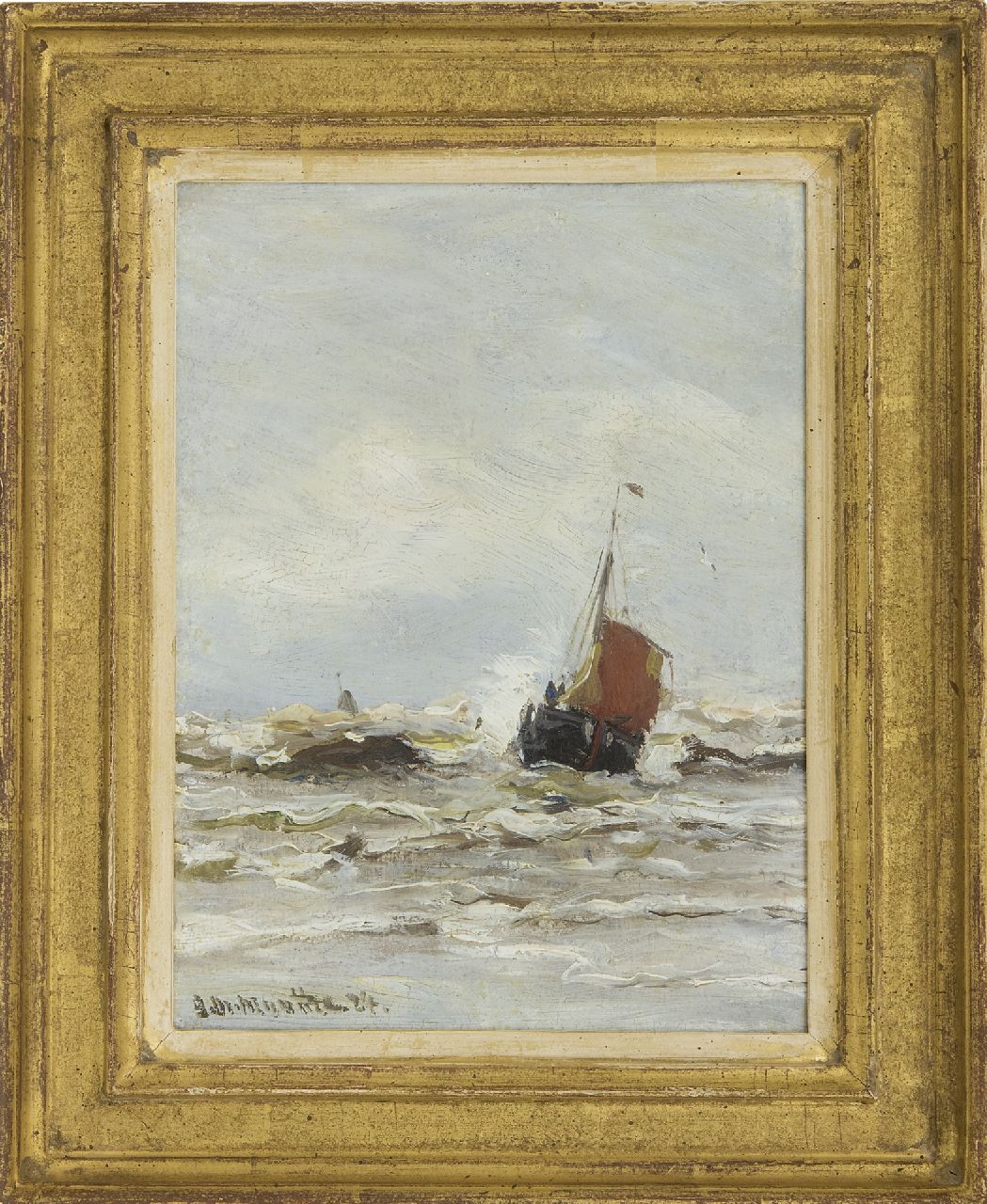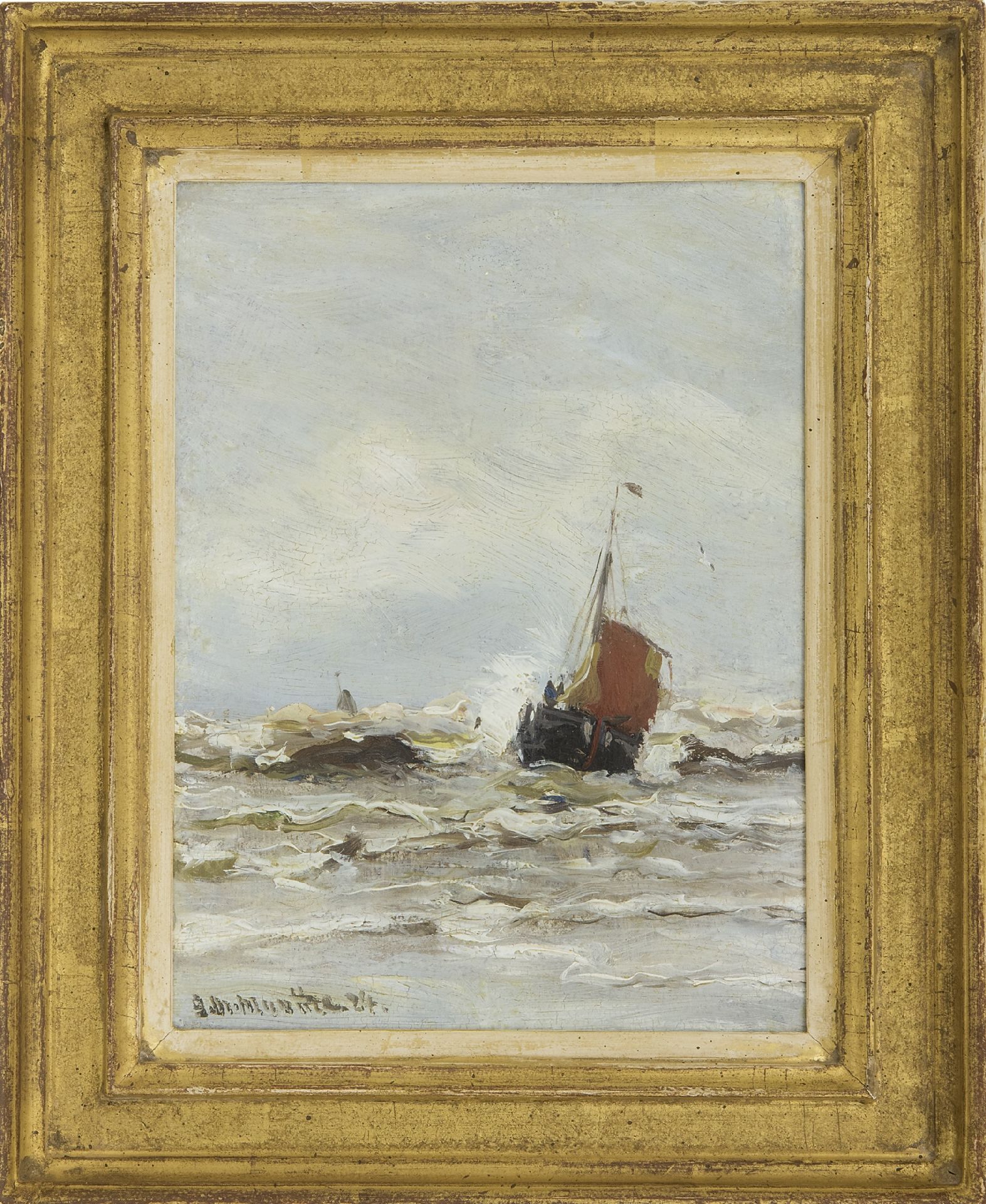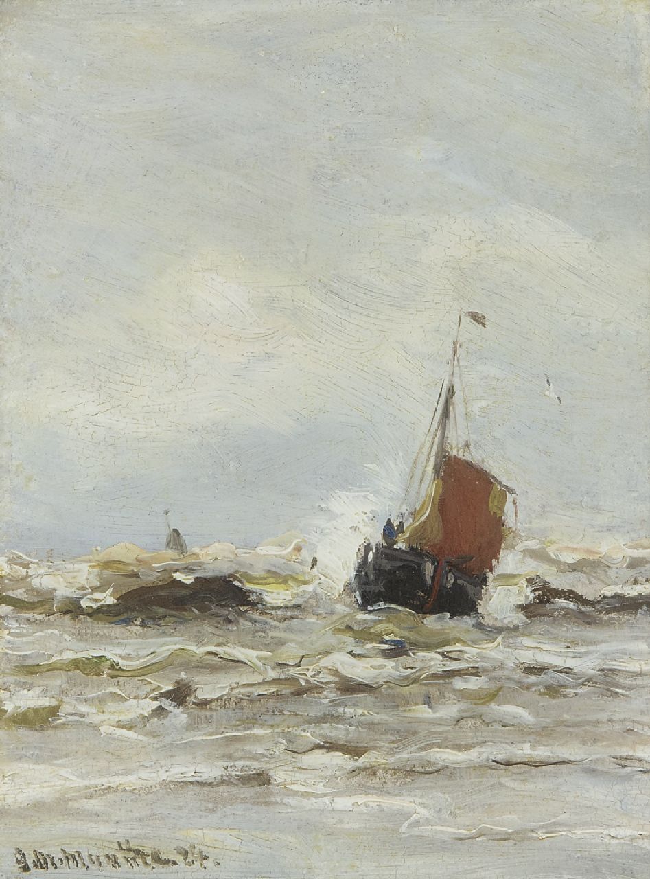 Morgenstjerne Munthe kunstwerk • schilderij • voorheen te koop Bomschuit in de branding