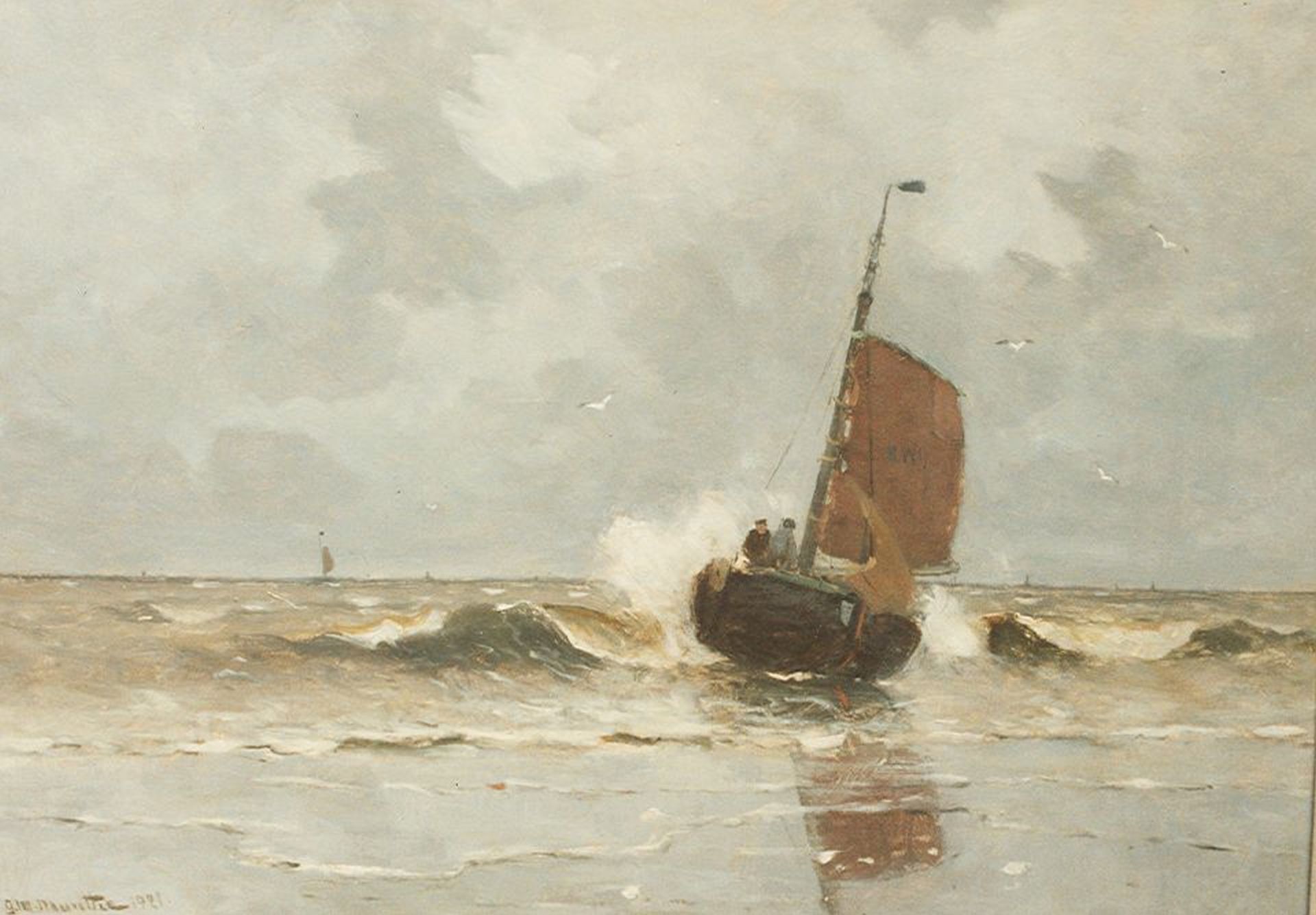 Morgenstjerne Munthe kunstwerk • schilderij • voorheen te koop Bomschuit in de branding