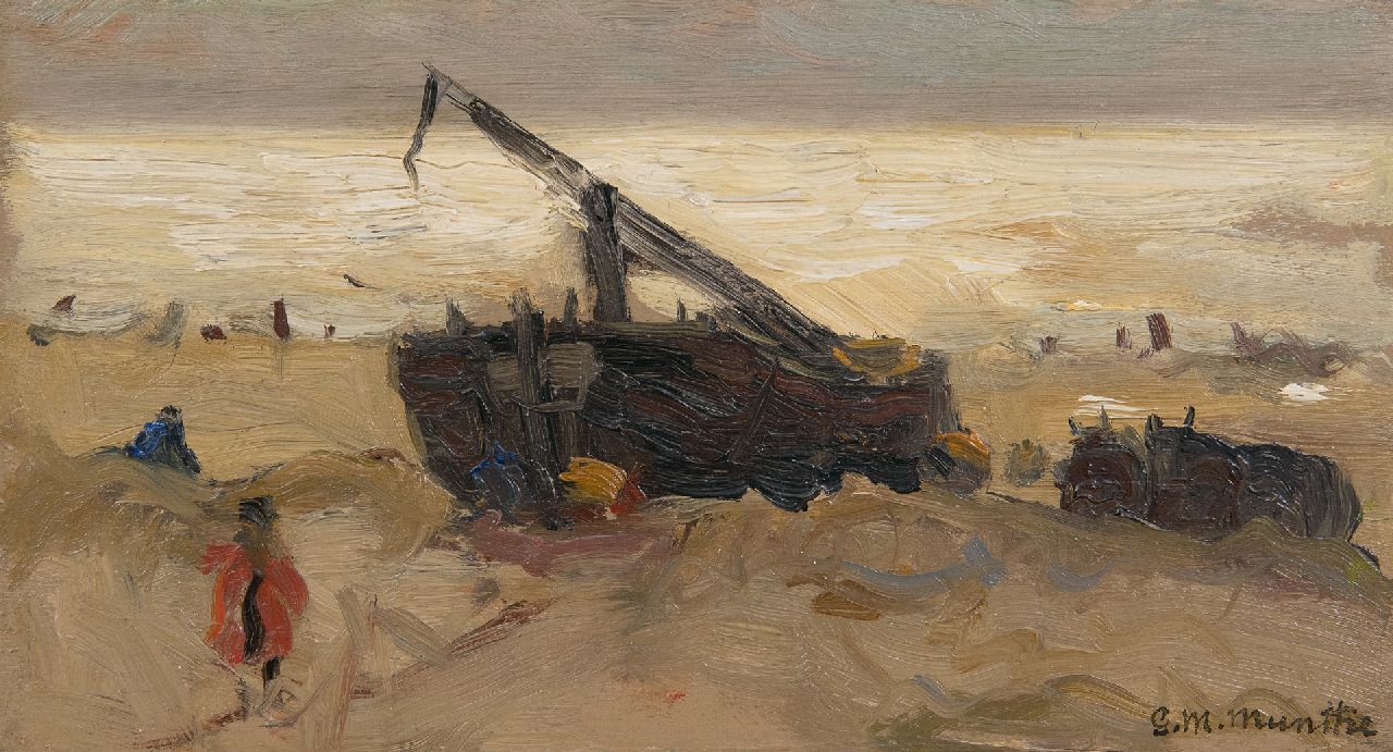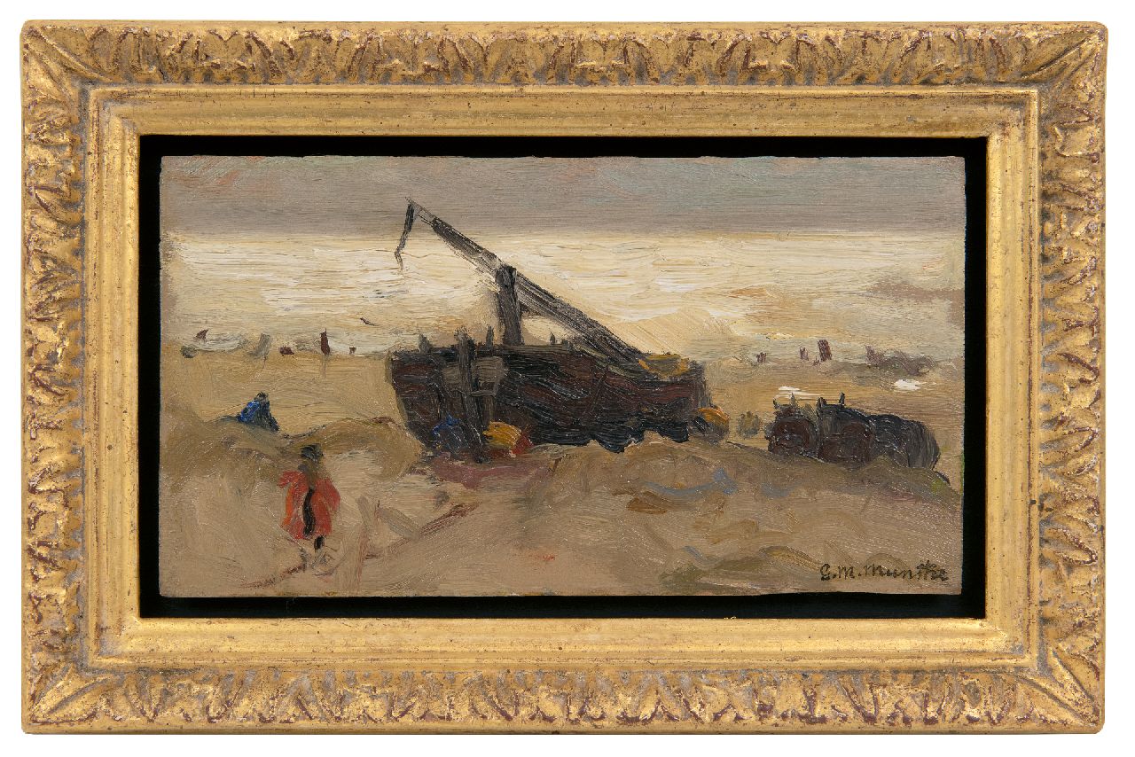 Morgenstjerne Munthe kunstwerk • schilderij • te koop Bomschuit op het strand