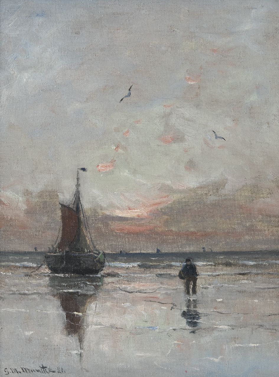 Gerhard Munthe, oorspronkelijk afkomstig uit Noorwegen, volgde een opleiding aan de kunstacademie in Düsseldorf, waar hij belangstelling kreeg voor het schilderen van strandgezichten. In 1901 vestigde hij zich in het vissersdorp Katwijk, populair bij schilders uit die tijd. Katwijk was een van de laatste vissersdorpen aan de Hollandse kust waar nog gevist werd vanaf het strand. De verhuizing bracht hem dicht bij de zee en het strand, wat veel inspiratie opleverde voor zijn schilderijen. Gerhard voegde al vroeg het poëtische Noorse woord 'Morgenstjerne' (Morningstar) aan zijn naam toe om zich te onderscheiden van zijn oom en naamgenoot Gerhard Peter Frantz Wilhelm Munthe, destijds een bekende Noorse landschapsschilder.