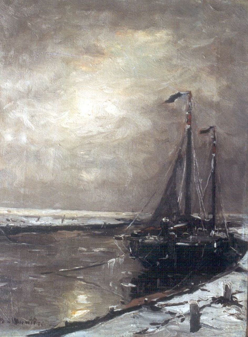 Morgenstjerne Munthe kunstwerk • schilderij • voorheen te koop Bomschuiten in de uitwatering te Katwijk