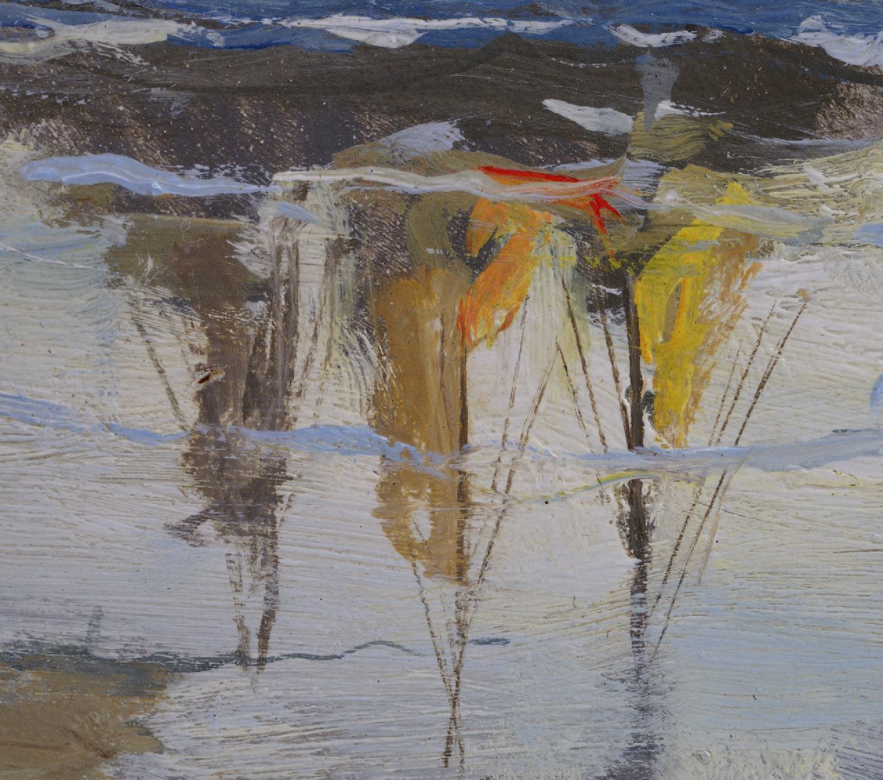 Morgenstjerne Munthe kunstwerk • schilderij • te koop Drie bomschuiten in de branding