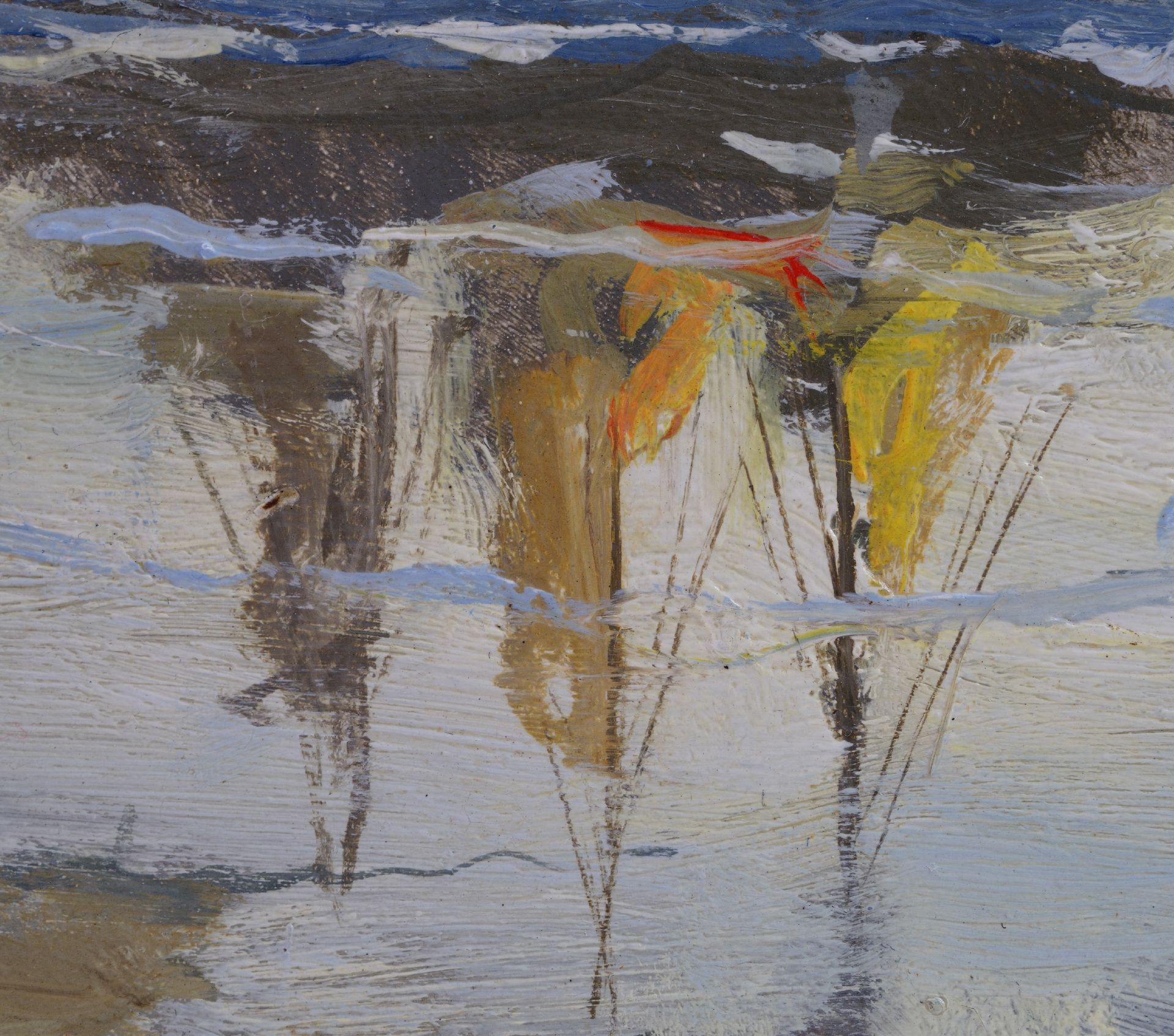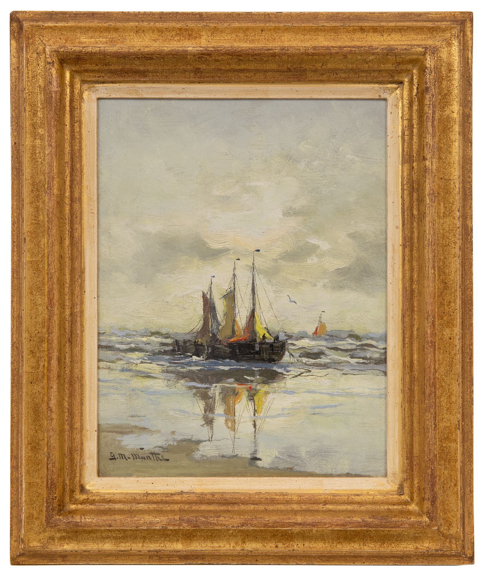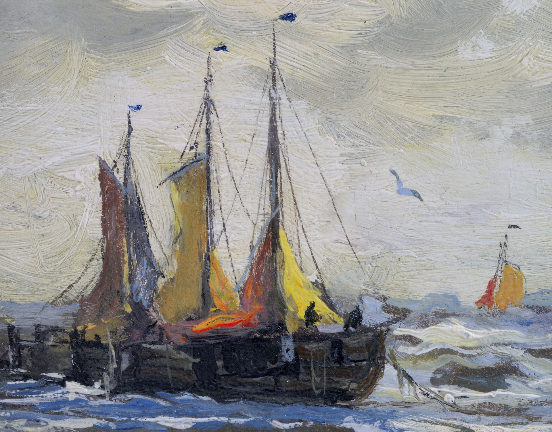 Morgenstjerne Munthe kunstwerk • schilderij • te koop Drie bomschuiten in de branding