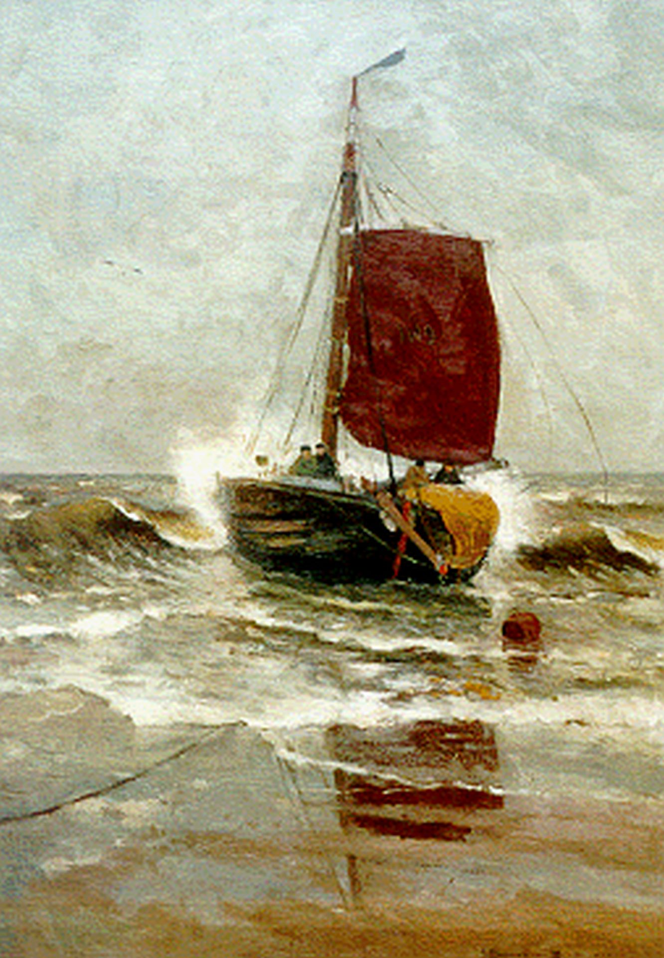 Morgenstjerne Munthe kunstwerk • schilderij • voorheen te koop Een bomschuit in de branding