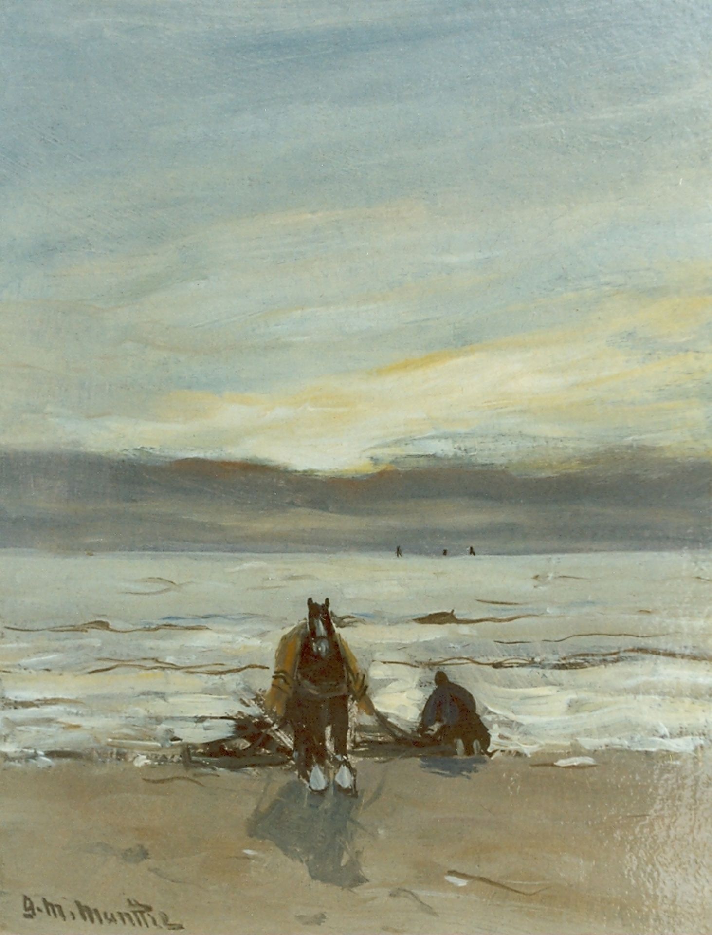 Morgenstjerne Munthe kunstwerk • schilderij • voorheen te koop Een schelpenvisser in de branding