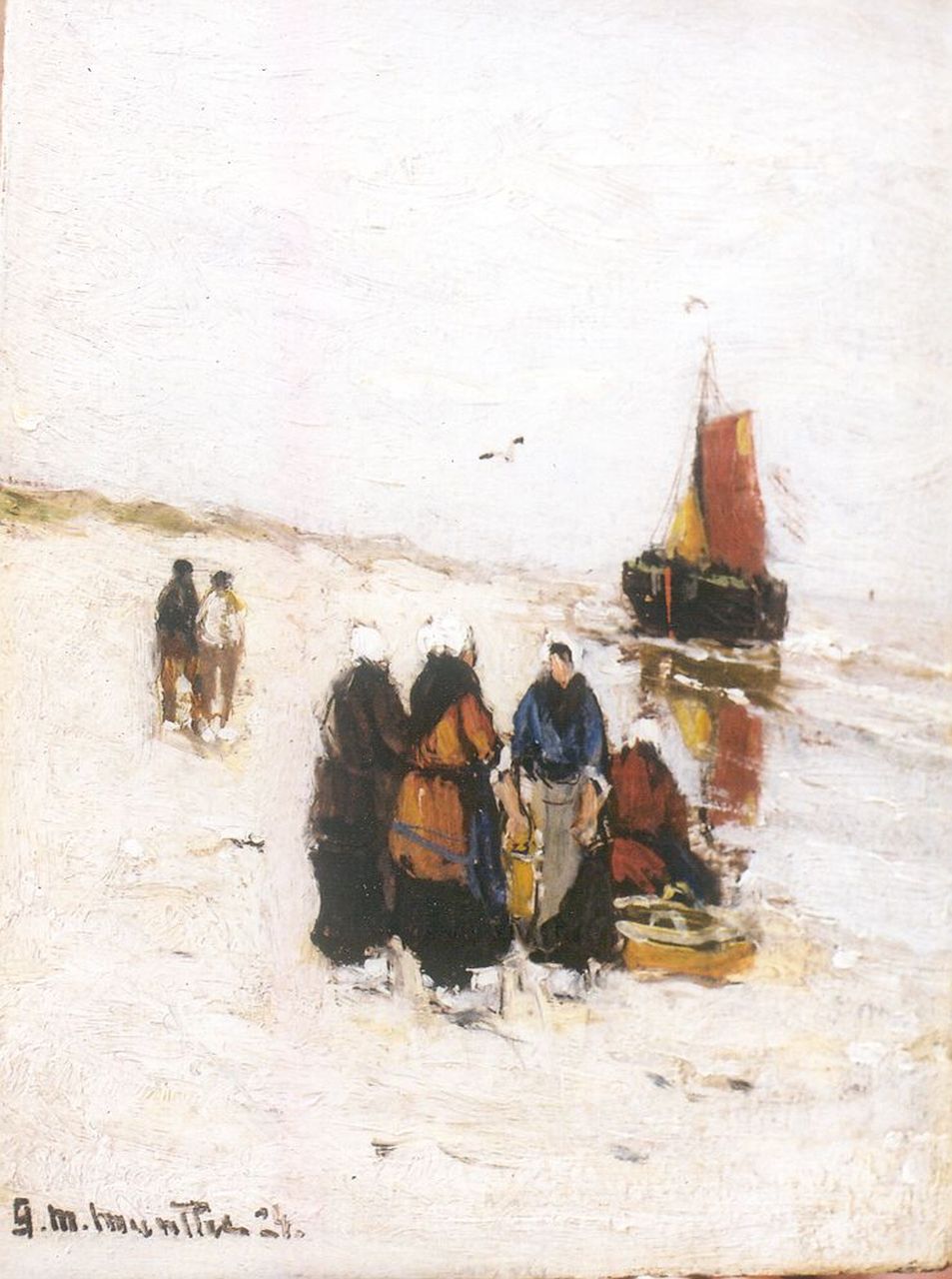 Gerhard Munthe, oorspronkelijk afkomstig uit Noorwegen, volgde een opleiding aan de kunstacademie in Düsseldorf, waar hij belangstelling kreeg voor het schilderen van strandgezichten. In 1901 vestigde hij zich in het vissersdorp Katwijk, populair bij schilders uit die tijd. Katwijk was een van de laatste vissersdorpen aan de Hollandse kust waar nog gevist werd vanaf het strand. De verhuizing bracht hem dicht bij de zee en het strand, wat veel inspiratie opleverde voor zijn schilderijen. Gerhard voegde al vroeg het poëtische Noorse woord 'Morgenstjerne' (Morningstar) aan zijn naam toe om zich te onderscheiden van zijn oom en naamgenoot Gerhard Peter Frantz Wilhelm Munthe, destijds een bekende Noorse landschapsschilder.