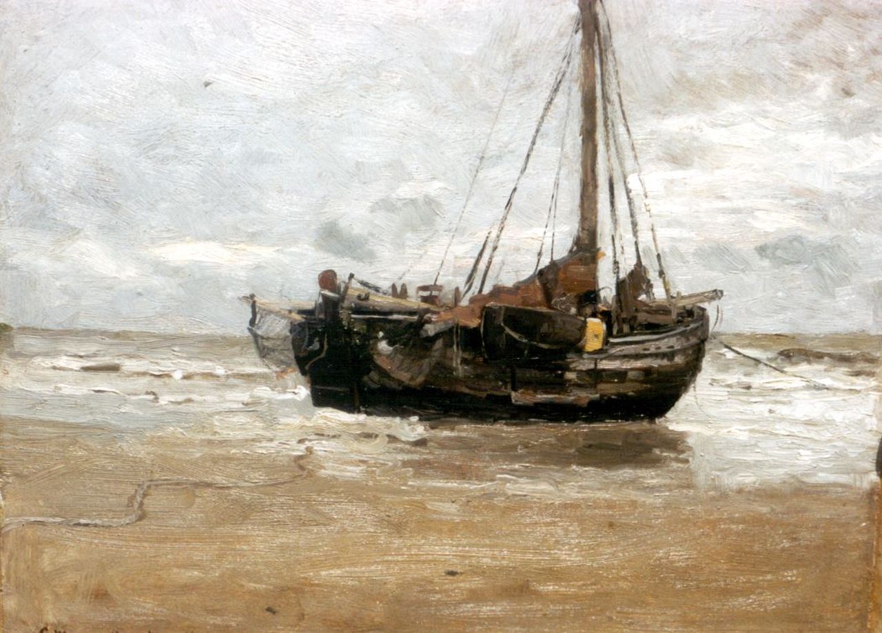 Morgenstjerne Munthe kunstwerk • schilderij • voorheen te koop Op het strand getrokken bomschuit