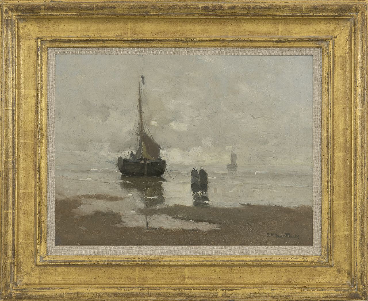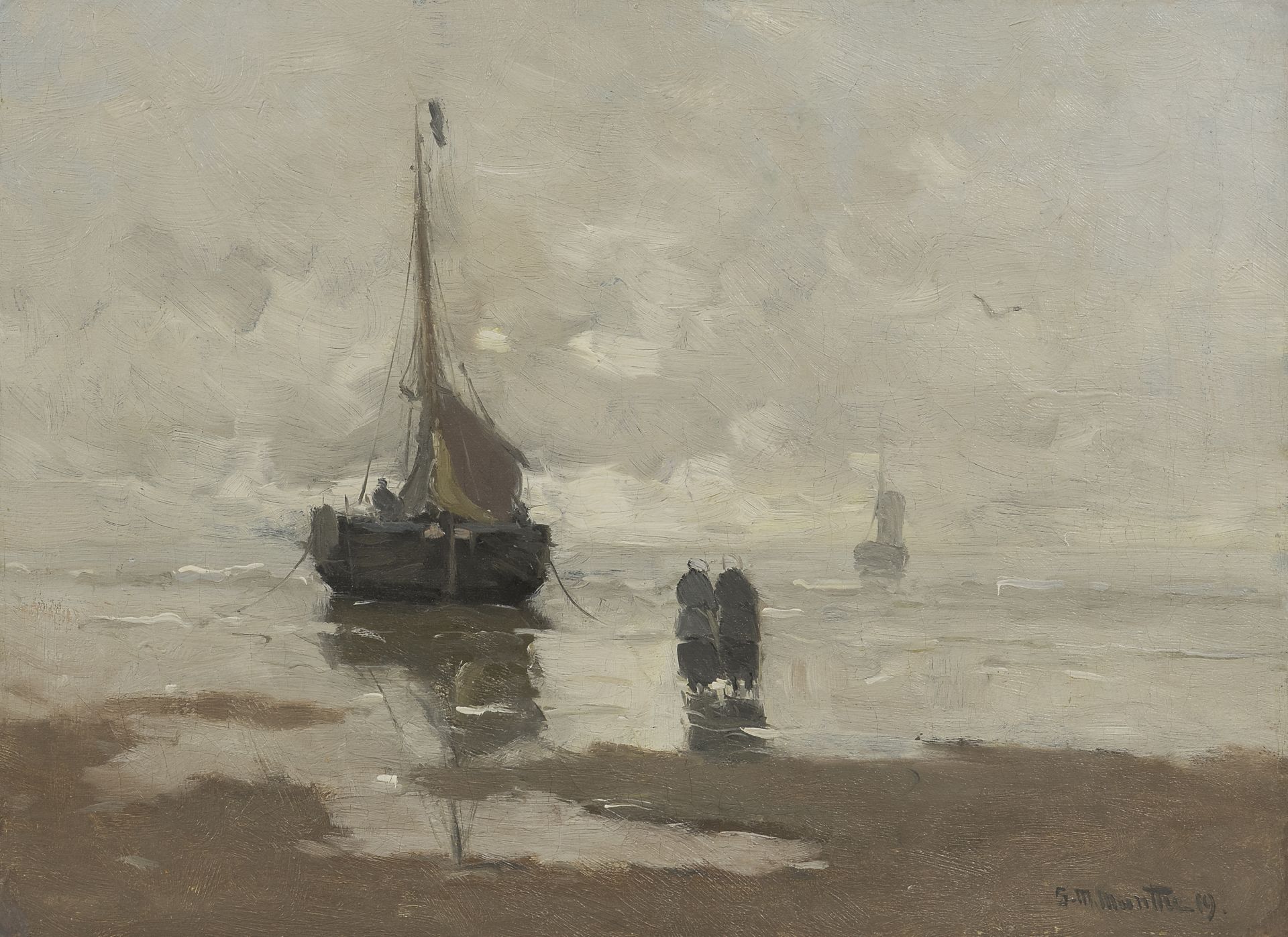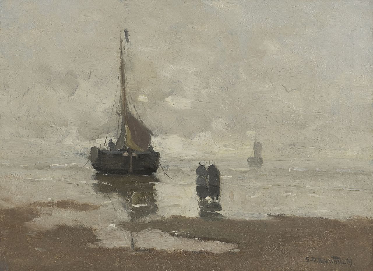 Morgenstjerne Munthe kunstwerk • schilderij • voorheen te koop Strand met vissersschuit