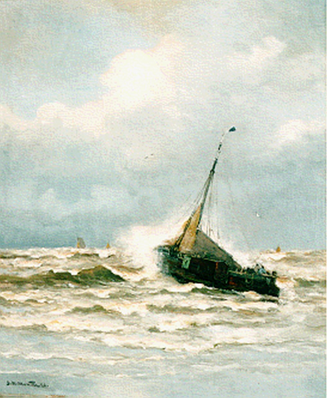 Morgenstjerne Munthe kunstwerk • schilderij • voorheen te koop Vissersboot in de branding