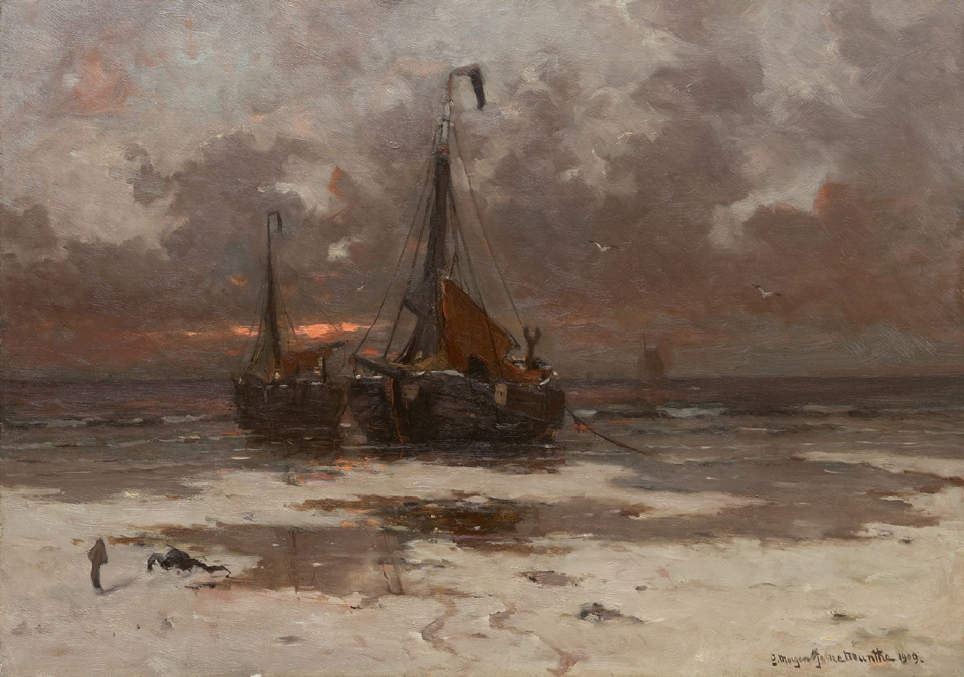 Morgenstjerne Munthe kunstwerk • schilderij • voorheen te koop Vissersboten voor anker bij ondergaande zon