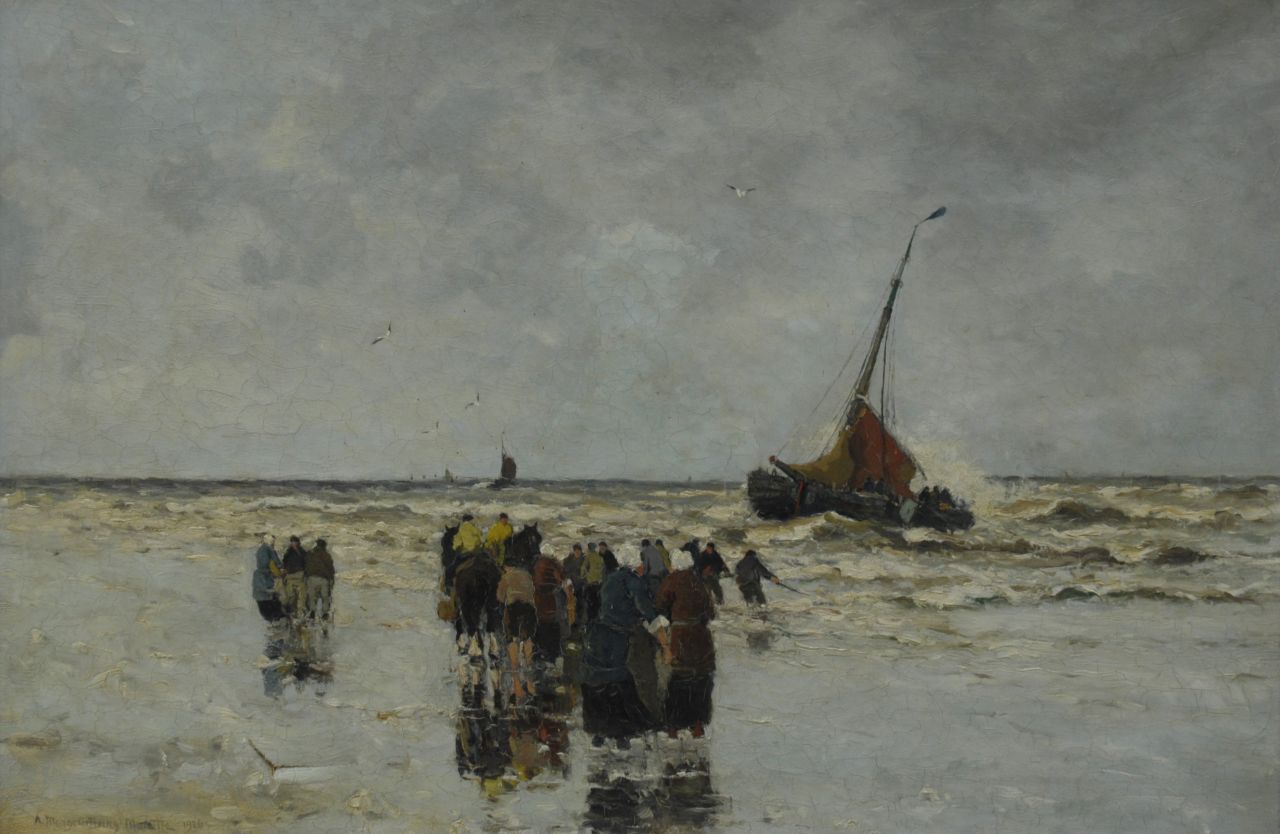 Morgenstjerne Munthe kunstwerk • schilderij • voorheen te koop Vissersvrouwen en klijnhalers wachtend op het strand