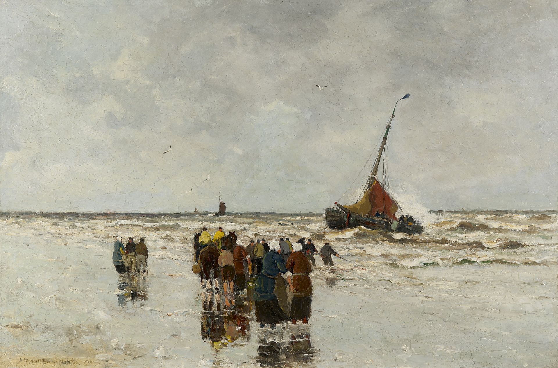 Morgenstjerne Munthe kunstwerk • schilderij • voorheen te koop Vissersvrouwen en klijnhalers wachtend op het strand